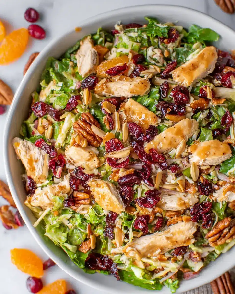 Protein: Packed with 27 grams of protein per serving, thanks to the tender chicken and nuts, this salad is a great way to meet your daily protein goals.