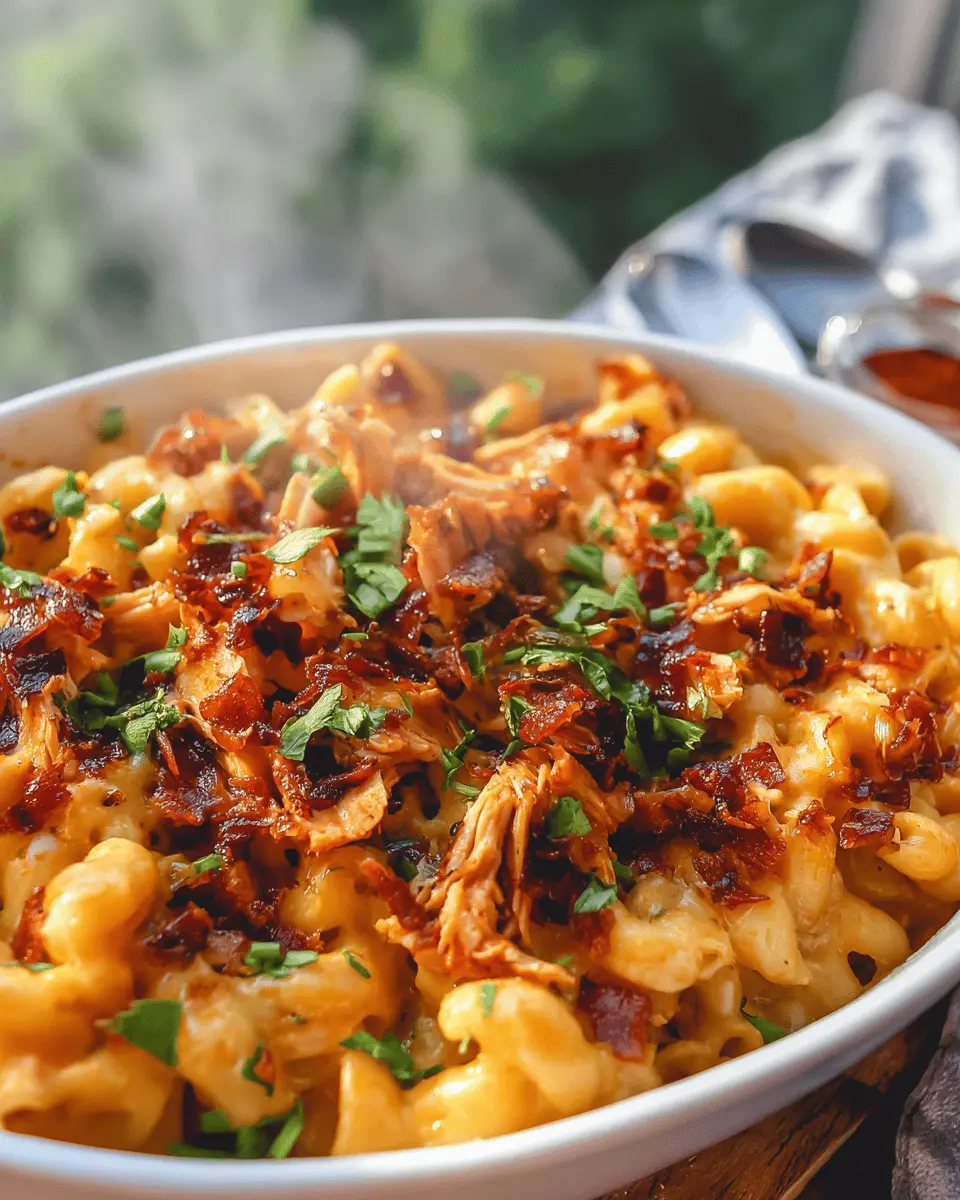 BBQ Chicken Mac and Cheese with Turkey Bacon
