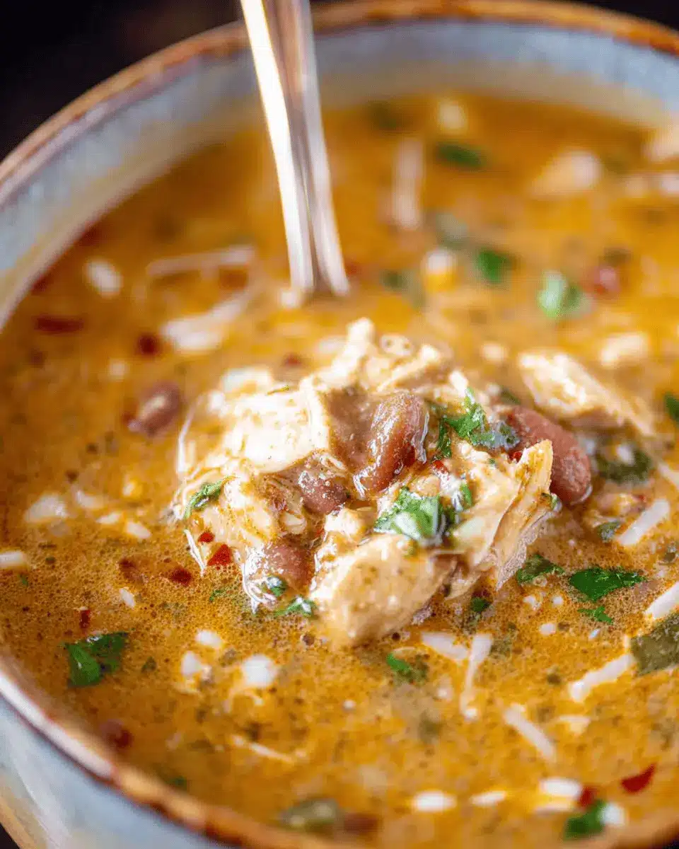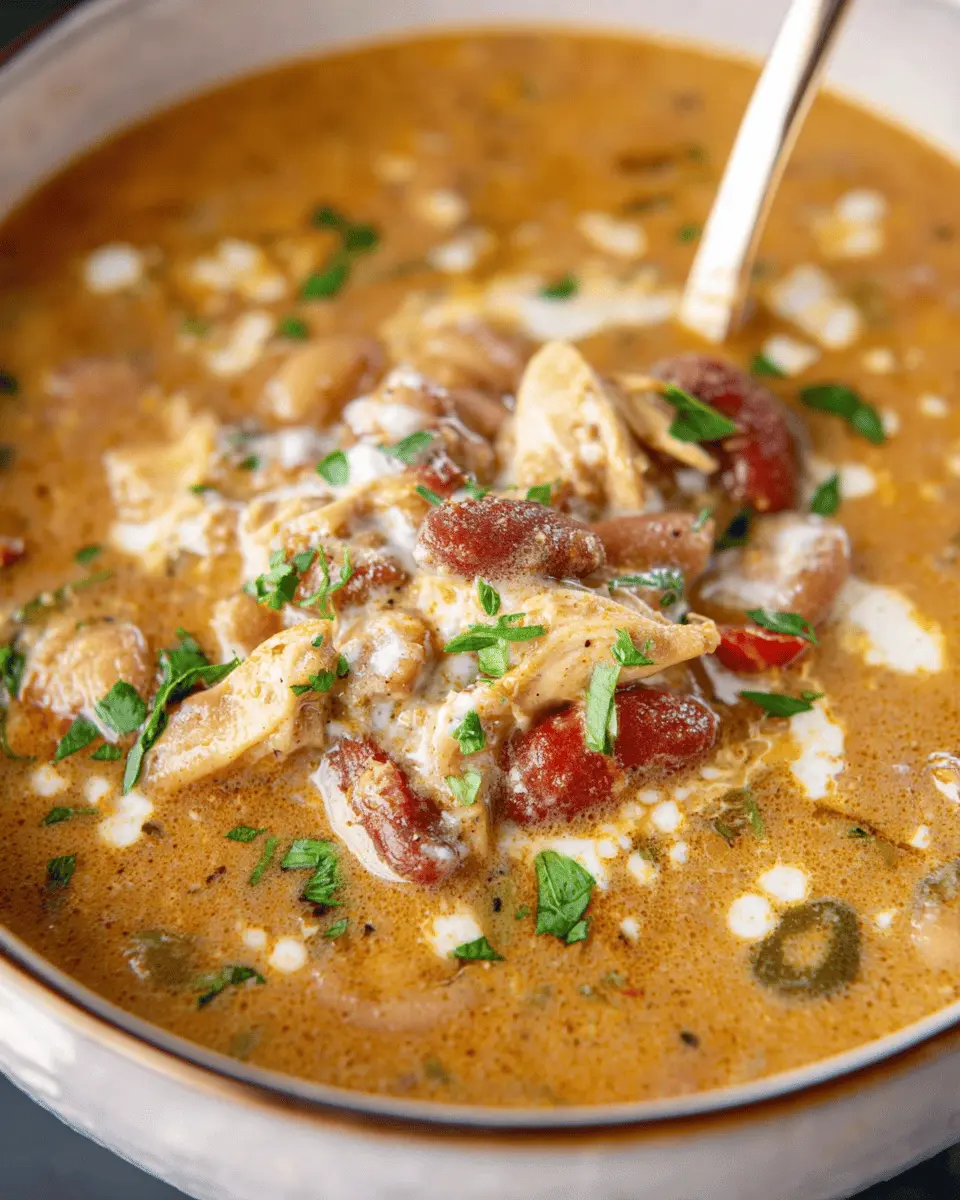 If you’re looking for a vegetarian-friendly spin, substitute the chicken and sausage for hearty ingredients like chickpeas or black beans. Use vegetable broth instead of chicken broth, and add in your favorite vegetables such as bell peppers and zucchini. This way, you still get a creamy, filling chili packed with flavor while keeping it plant-based.
