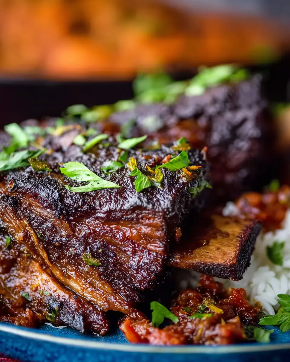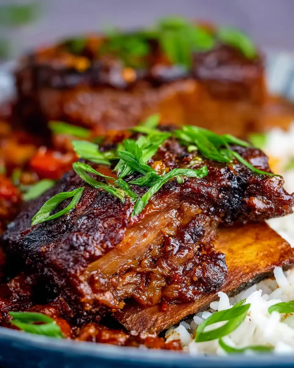 Increase the oven temperature to 200°C (400°F) and roast uncovered for another 20–30 minutes. You’ll want to watch as the ribs darken and turn sticky—this is how we achieve that irresistible caramelization! Once they’re ready, make sure to finish with a sprinkle of chili flakes and freshly chopped coriander for that extra pop of flavor. Serve your beautiful caramelized slow roast Asian beef short rib with boiled rice for a truly rewarding meal. Enjoy every tender, flavorful bite!