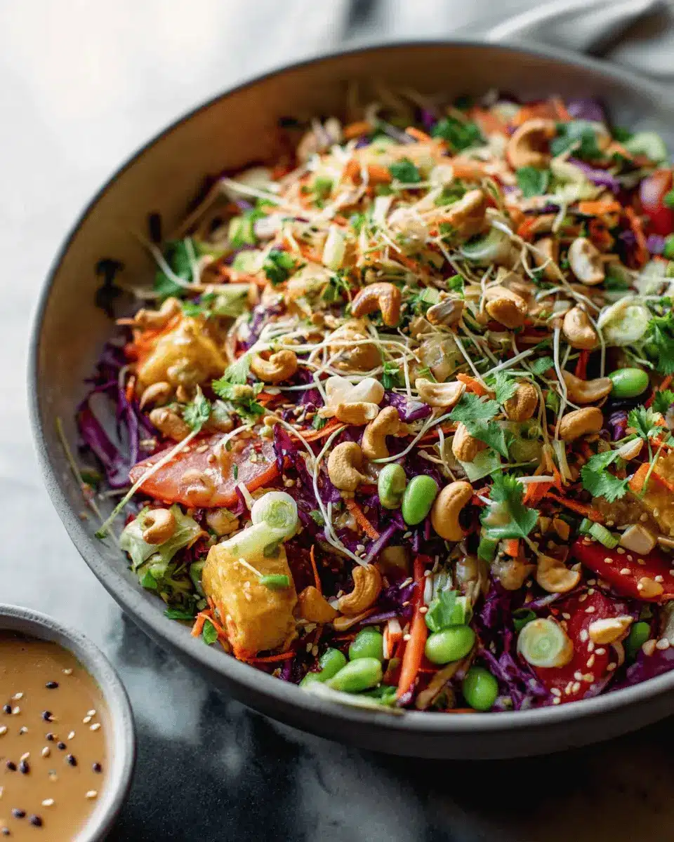 Creating a vibrant Cashew Crunch Salad is as enjoyable as it is delicious! With layers of colorful veggies, protein of your choice, and a mouthwatering sesame dressing, you’re in for a treat. Let’s dive into the steps to make this appetizing dish come alive on your table.
