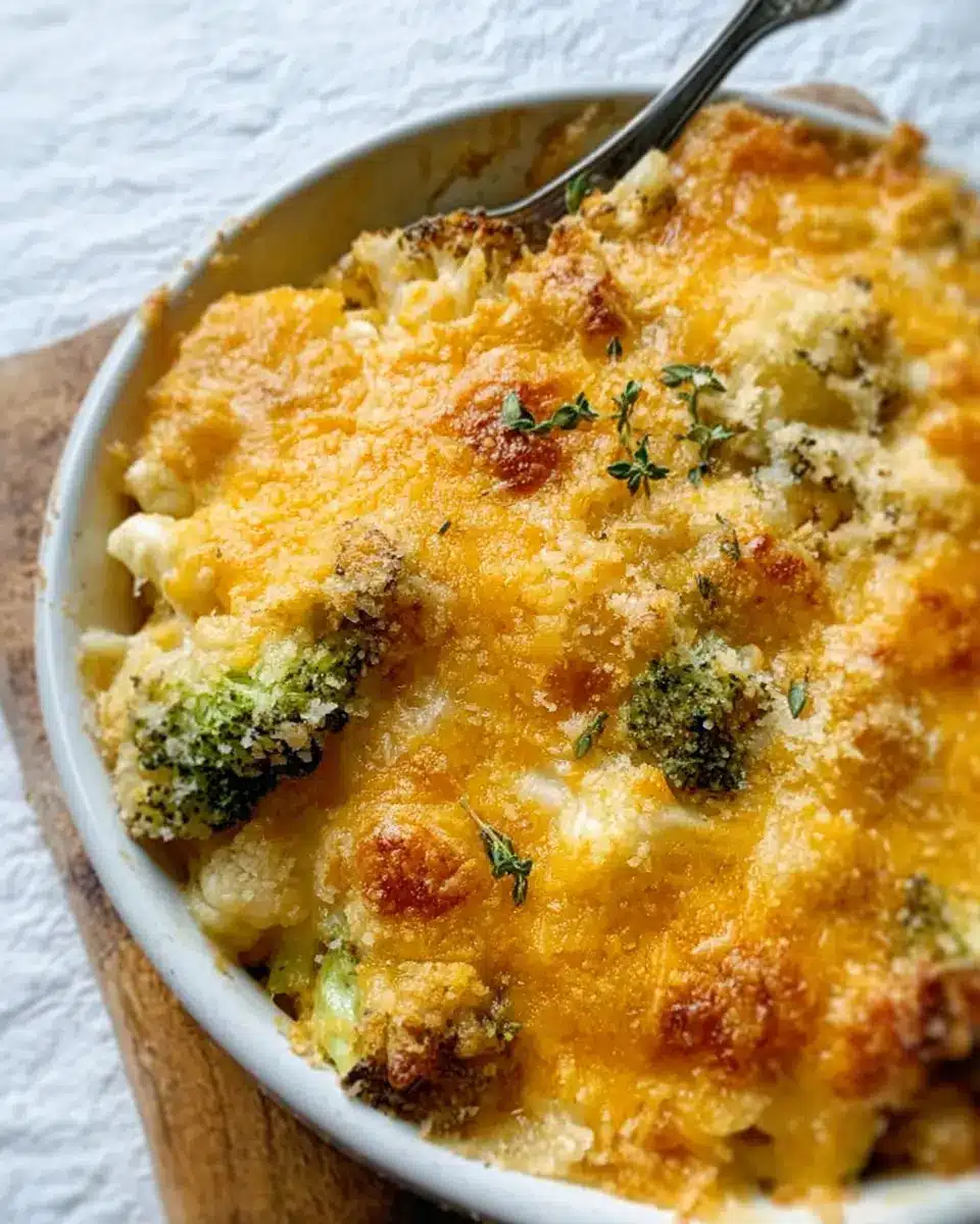 Cheddar Broccoli Cauliflower Gratin