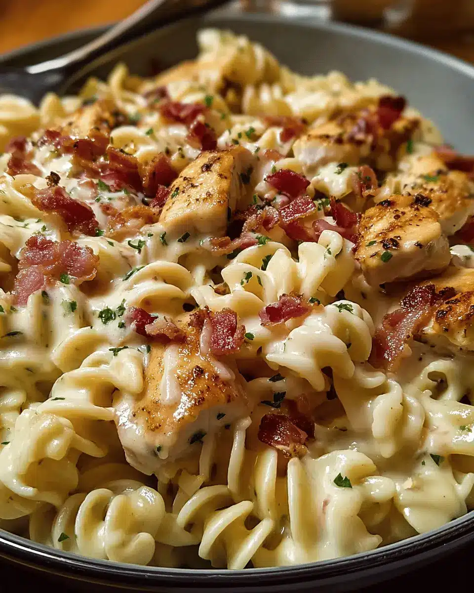 In summary, this delightful chicken bacon ranch pasta recipe perfectly blends flavors and textures for a comforting meal. The combination of tender chicken, crispy turkey bacon, and creamy ranch sauce makes it a guaranteed hit with family and friends. Give it a try, and enjoy the smiles at your table!