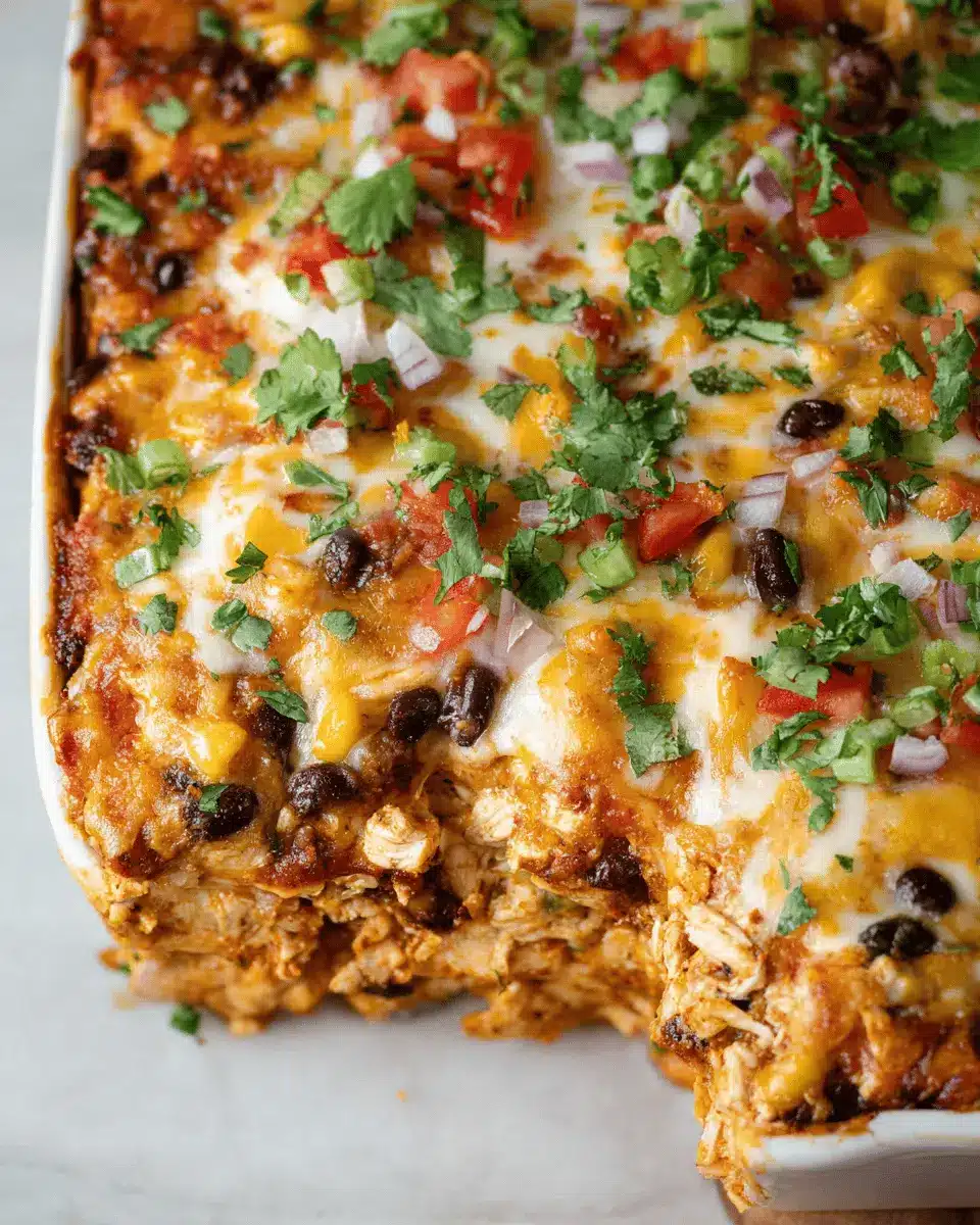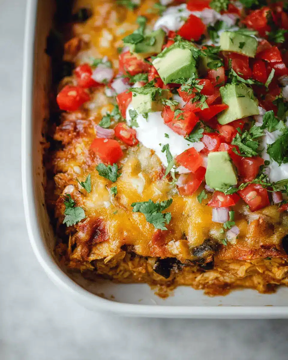 Absolutely! One of the best features of the Chicken Burrito Casserole is its adaptability. You can prepare the dish a day in advance – simply assemble everything in the baking dish, cover it with foil, and refrigerate. When you’re ready to eat, bake it straight from the fridge, just adding a few extra minutes to the cooking time to ensure it’s heated all the way through.