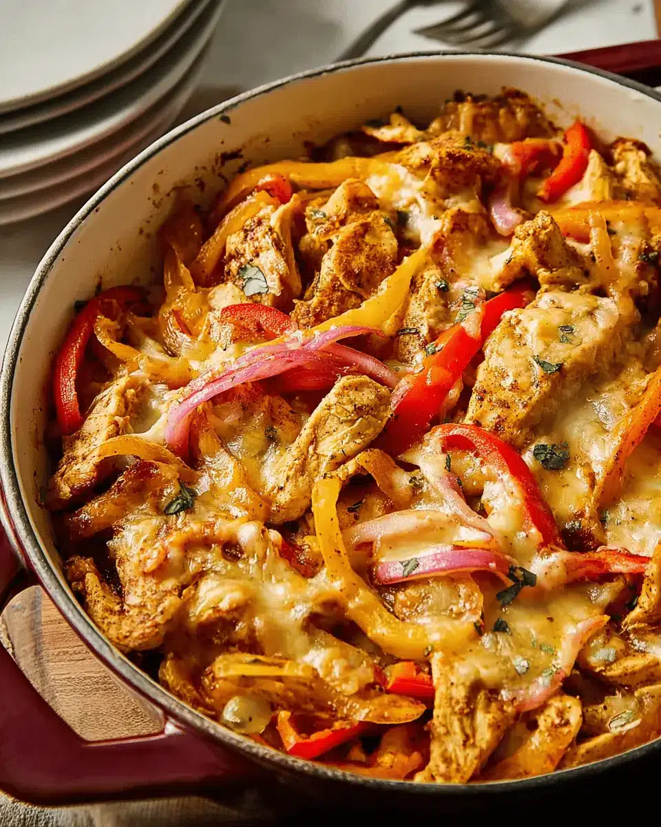 This flavorful chicken fajita casserole is a game-changer for home cooks seeking simplicity without sacrificing taste. With one-skillet preparation, vibrant ingredients, and a gooey cheese topping, it’s perfect for busy weeknights or cozy gatherings. Trust us, your friends and family will keep coming back for more!