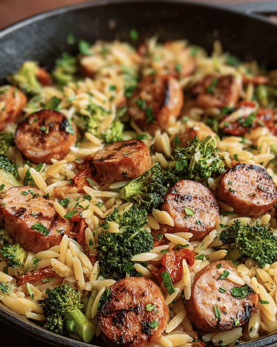 These ingredients elevate your chicken sausage broccoli orzo, creating a deliciously balanced meal.