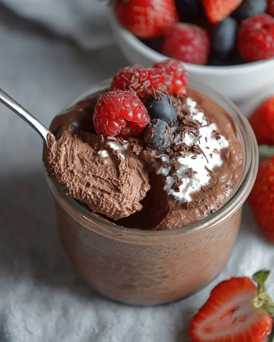 Elevate your Chocolate Chia Protein Pudding by adding delightful toppings. Here are a few delicious options: