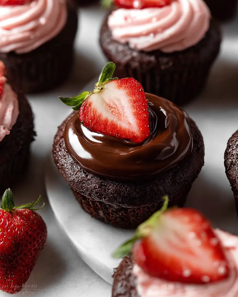 Elevate your chocolate covered strawberry cupcakes with thoughtful presentation. Arrange them on a tiered cake stand for a stunning display at parties, or use decorative boxes for a charming gift. You can also drizzle extra chocolate ganache on the serving plate and garnish with fresh strawberries or edible flowers for a pop of color.