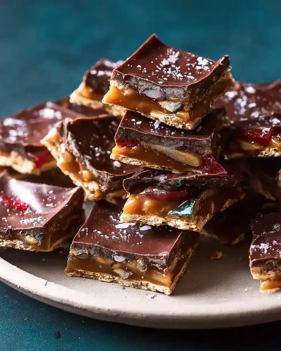 If you’re looking to give your Christmas Cracker Candy a refreshing twist, try adding crushed peppermint candies or candy canes. Simply sprinkle the peppermint over the melted chocolate before it sets. The cool minty flavor pairs beautifully with the rich chocolate and buttery caramel base, making it a delightful treat perfect for holiday gatherings.