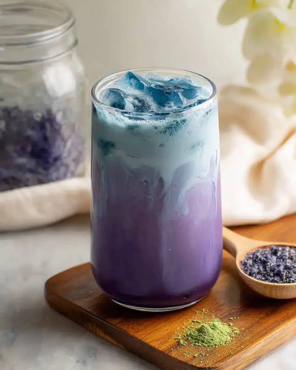 With just 4 grams of sugar per serving, this latte offers a subtly sweet flavor without overwhelming your diet. The combination of butterfly pea flower and matcha not only provides vibrant color but also boasts impressive health benefits, like antioxidant properties and potential mood-enhancing effects. For more about the benefits of butterfly pea flower, check out this wellness article. So, sip away, knowing you’re nourishing your body and soul!