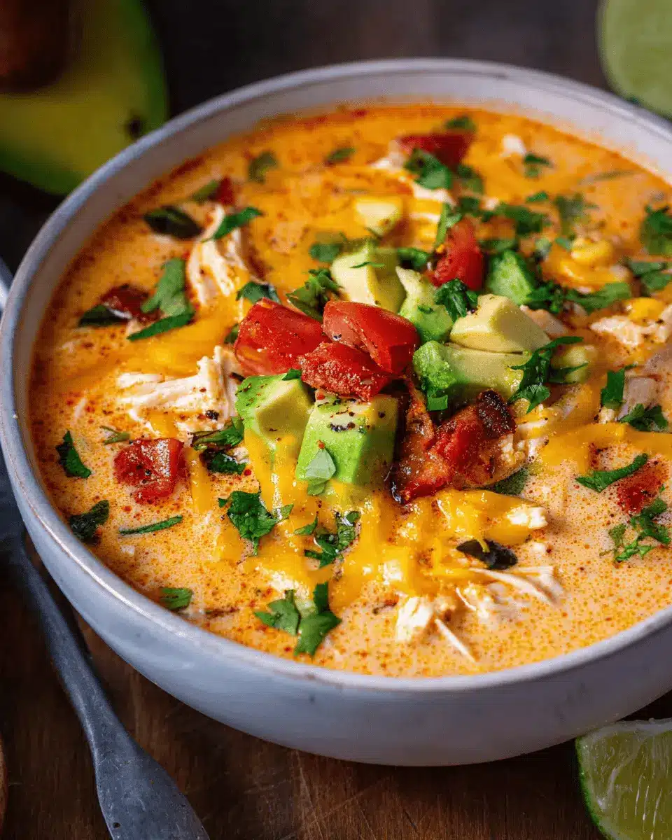 Elevate your creamy chicken enchilada soup by exploring various toppings! Consider adding: