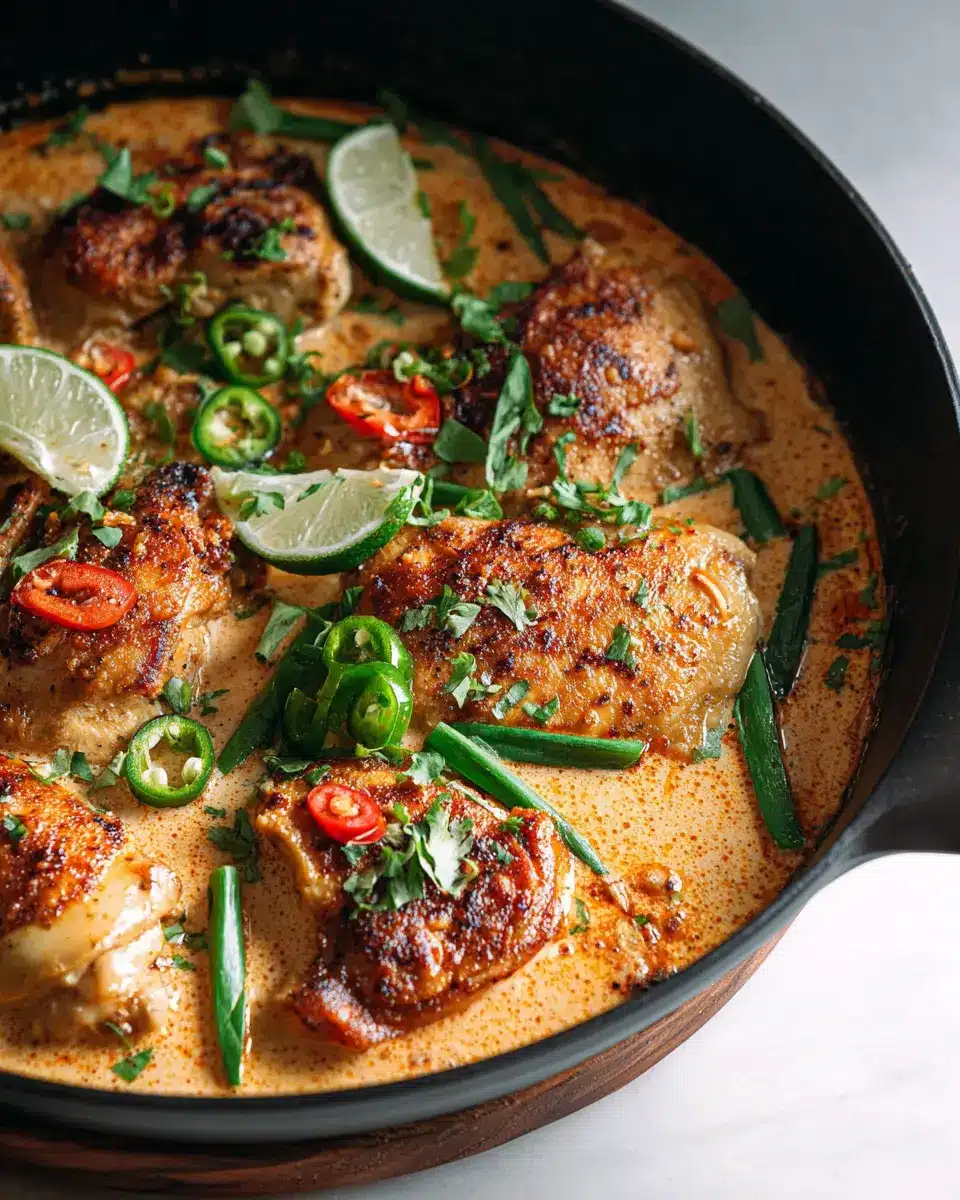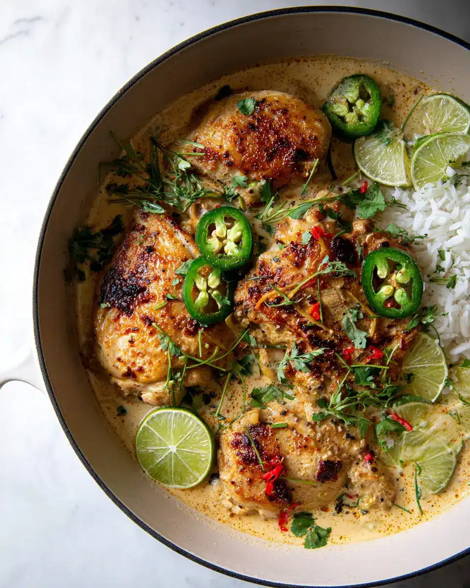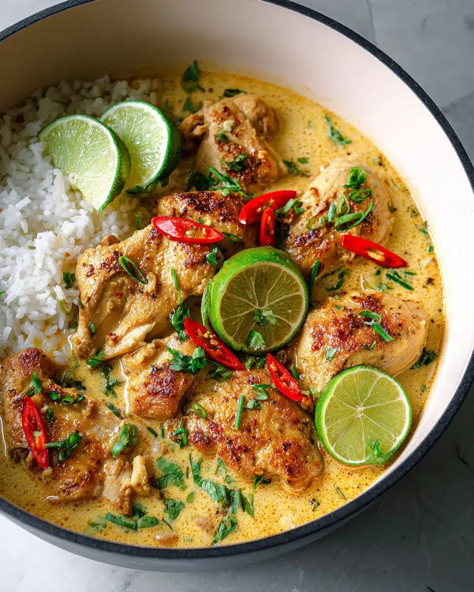 Aesthetic appeal matters! Elevate your creamy coconut milk chicken by garnishing it with fresh cilantro, which adds a pop of green. A sprinkle of red pepper flakes not only adds visual contrast but also introduces a delightful hint of heat. Squeeze a wedge of lime over the dish right before serving for an extra zesty touch. These small details enhance your presentation and elevate the overall dining experience, making every meal feel like a special occasion!