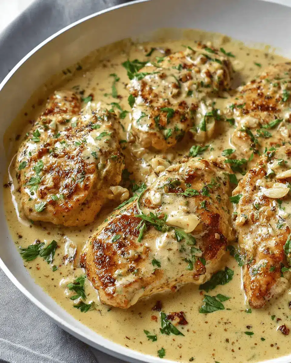 Finally, return the golden chicken cutlets to the skillet, spooning that dreamy creamy garlic sauce over the top. Allow everything to heat through for a few minutes. For an added touch, sprinkle with fresh parsley before serving. This dish pairs beautifully with rice or pasta, so consider making a side while you wait. Enjoy your homemade Creamy Garlic Chicken and bask in the glory of your culinary achievement!
