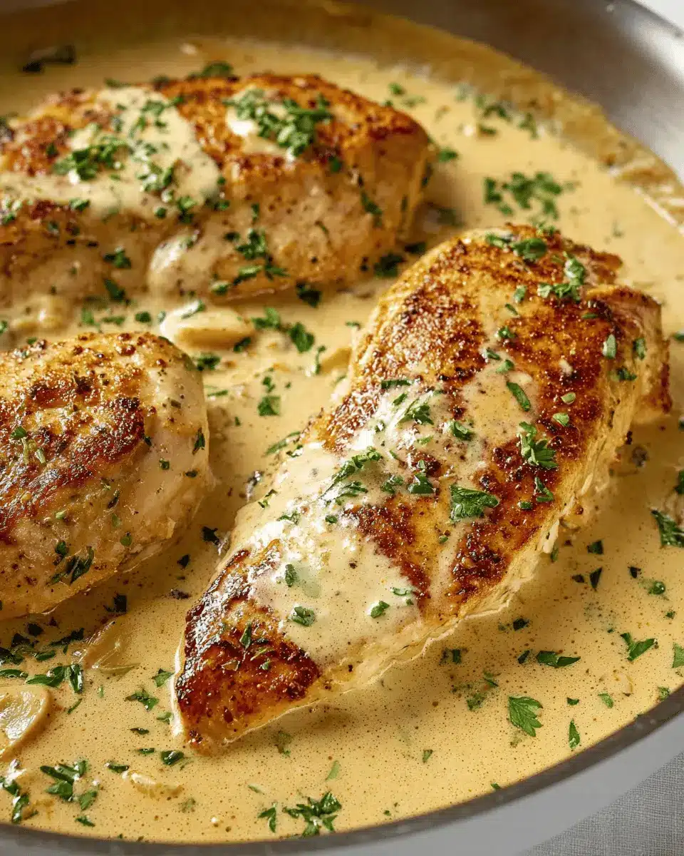 - Finally, return the cooked chicken breasts to the skillet and spoon the creamy sauce over top. Allow the chicken to heat through. Serve with fresh chopped parsley (optional), and enjoy!