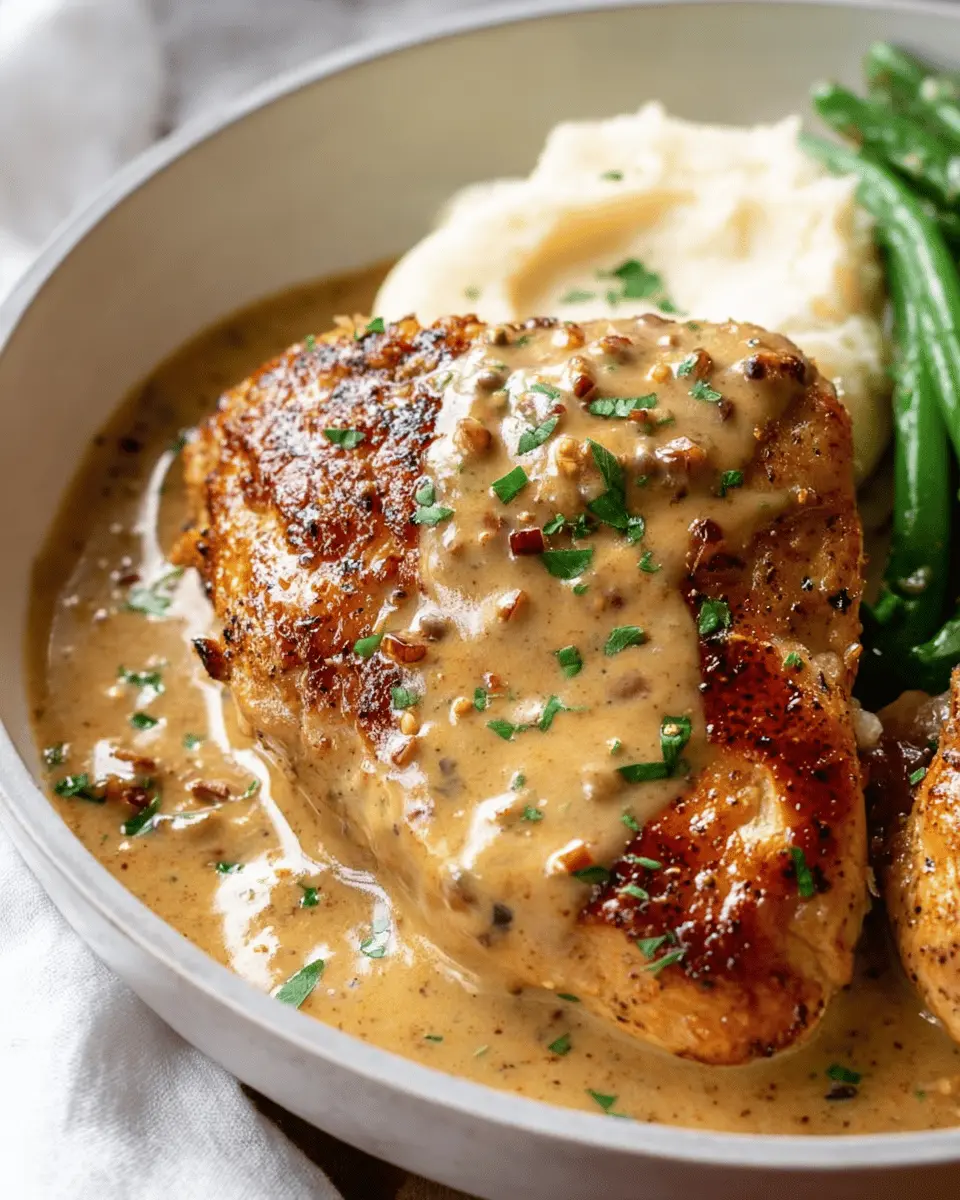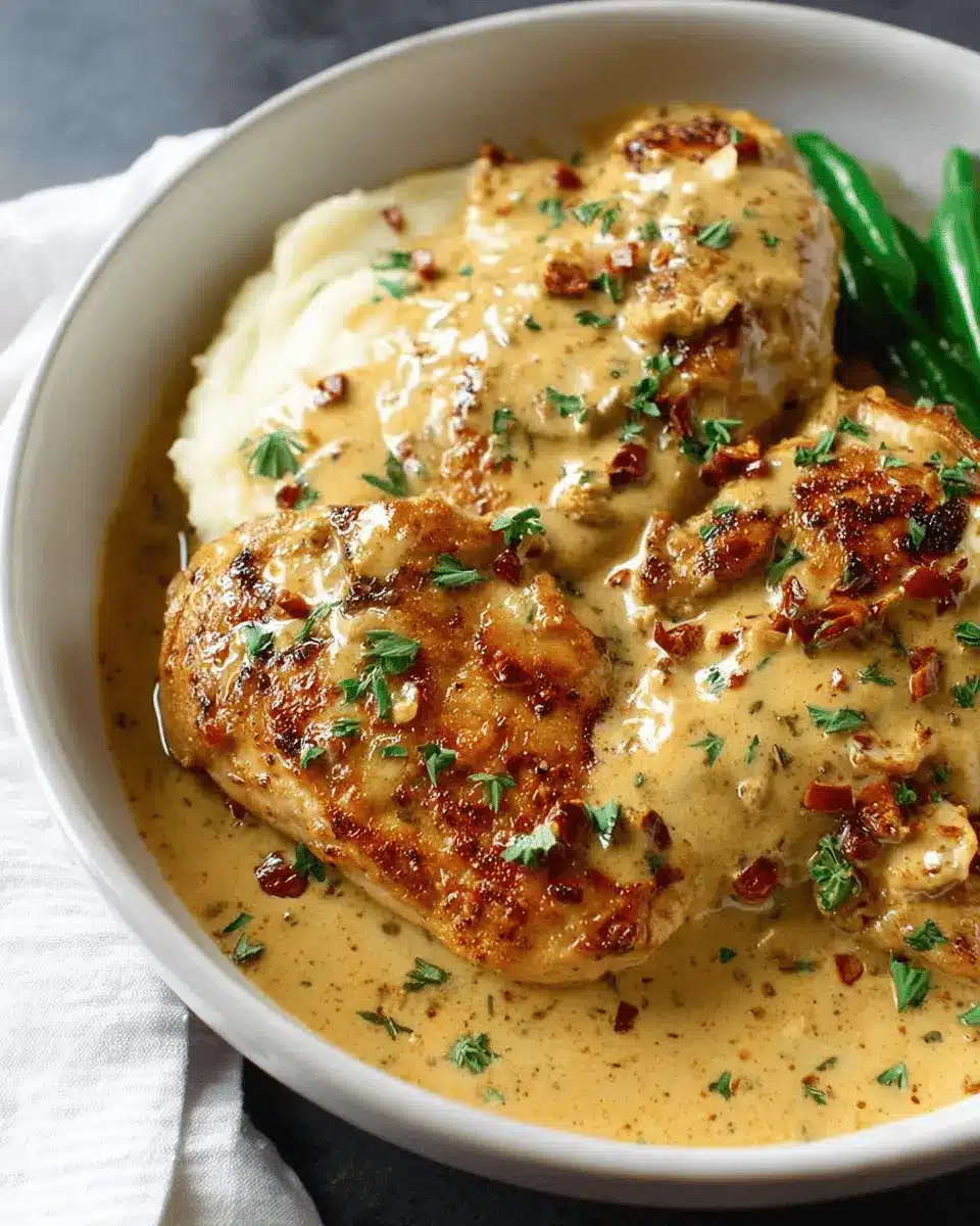 - Heat Together: Spoon the creamy sauce over the chicken, cover partially, and let it simmer for about 5 minutes.