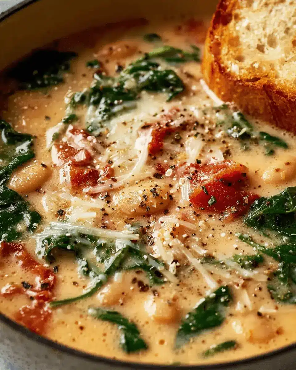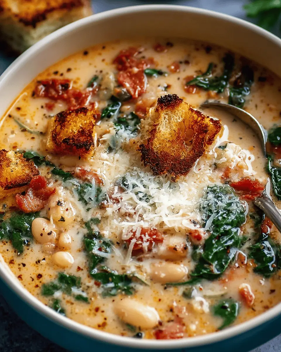 If you’re looking to add a little extra nutrition to your Creamy Parmesan Tuscano Soup, consider mixing in some fresh kale. Simply toss in a handful of chopped kale when you add the spinach. It wilts beautifully and gives a delightful earthy flavor that pairs well with the creamy base. Plus, kale is packed with vitamins and minerals, making this soup even more wholesome.