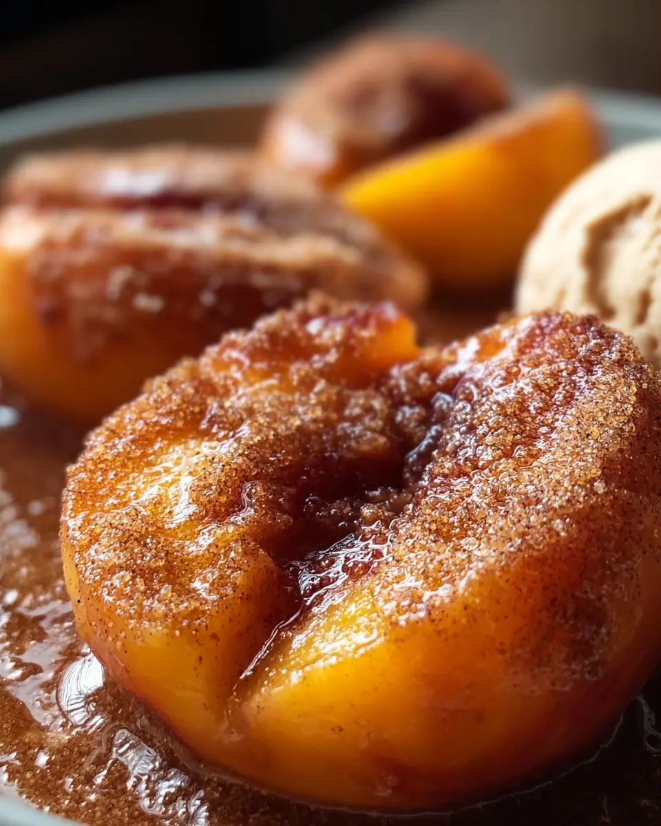 Drizzle with Honey or Caramel Sauce: For a sweet finishing touch, a drizzle of honey or warm caramel sauce can take these peaches over the top.