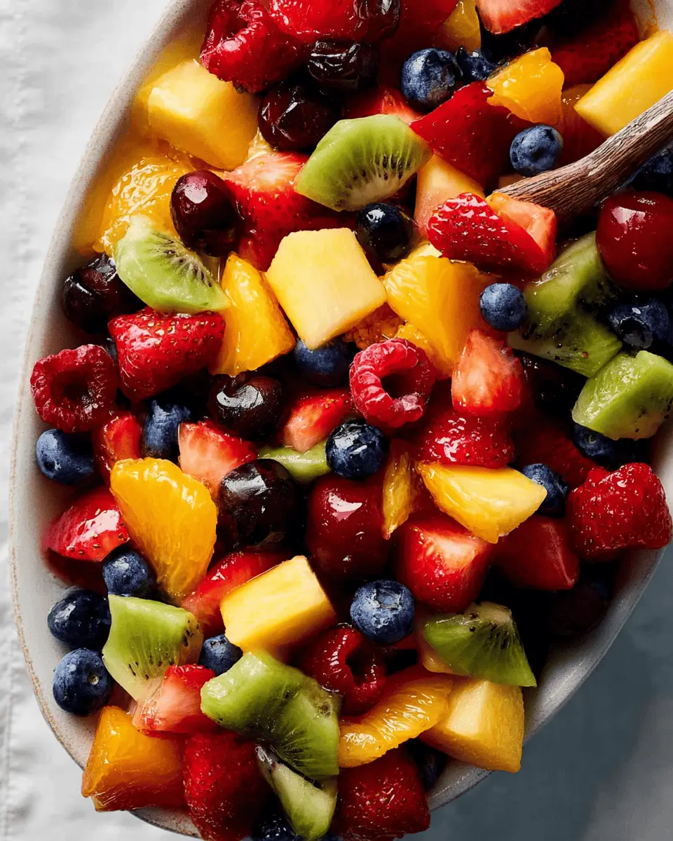Once all your fruits are prepped, it’s mixing time! Take a large mixing bowl and gently combine all your fruits. Don’t rush this step; use a spatula or wooden spoon to carefully blend them together without bruising the berries.