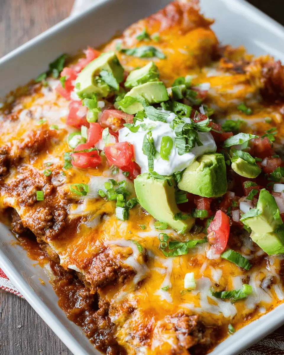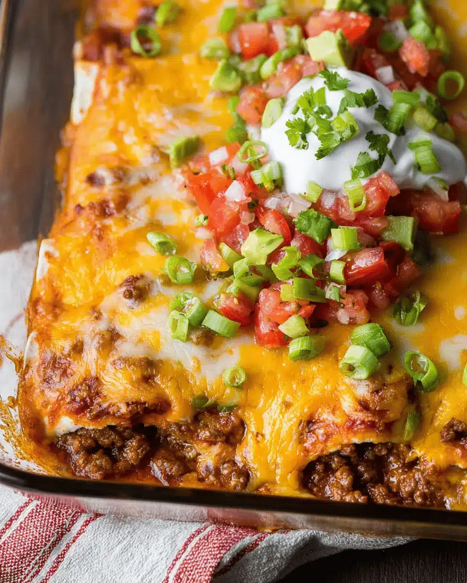 - Layered Bake: For a twist, create a layered enchilada casserole by alternating layers of tortillas, beef mixture, and cheese.