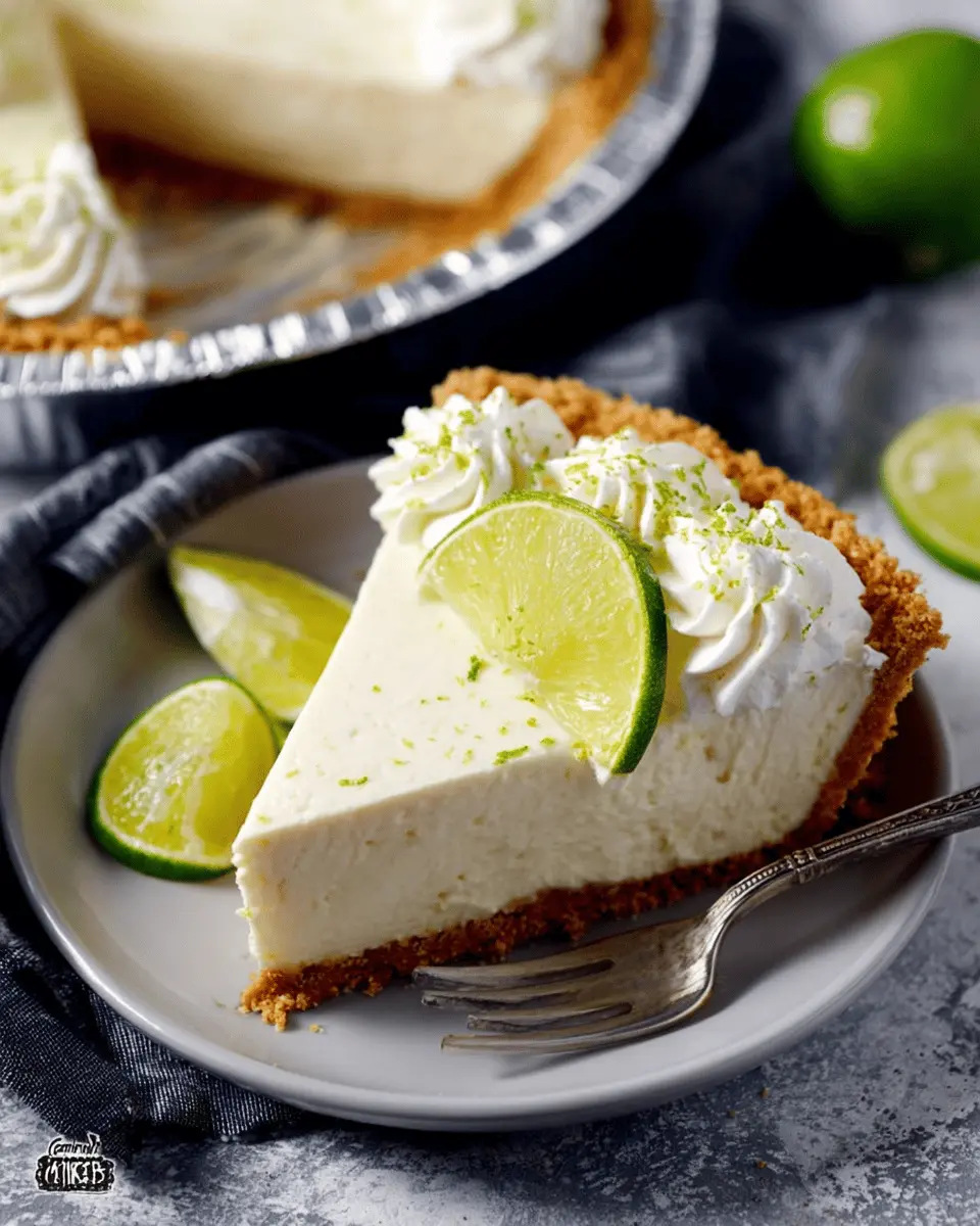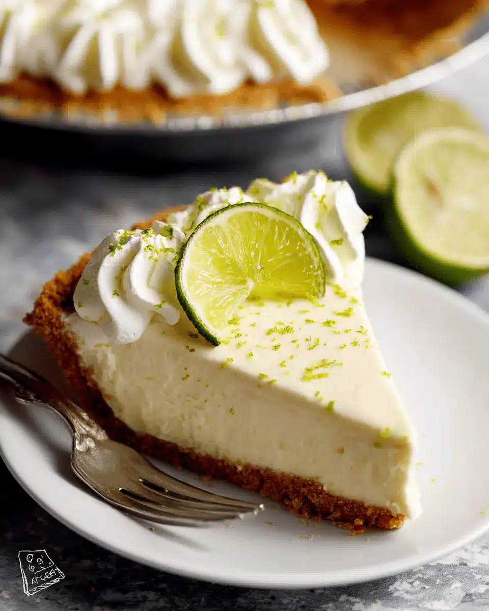 - Top the pie with whipped cream and garnish with lime slices before serving.