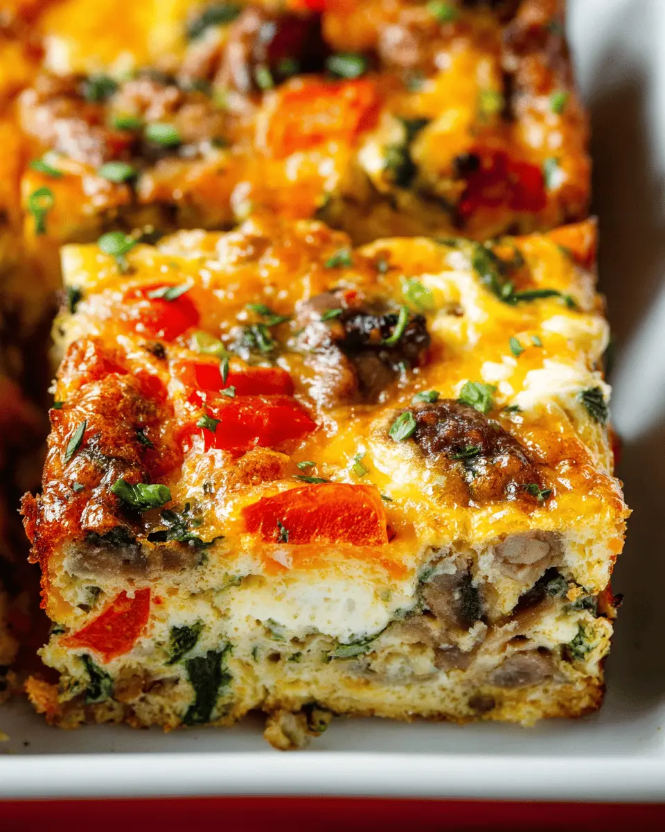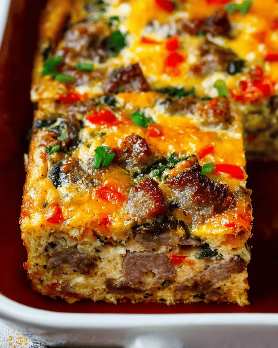 Easy Make-Ahead Breakfast Casserole with Turkey Bacon and Chicken Ham