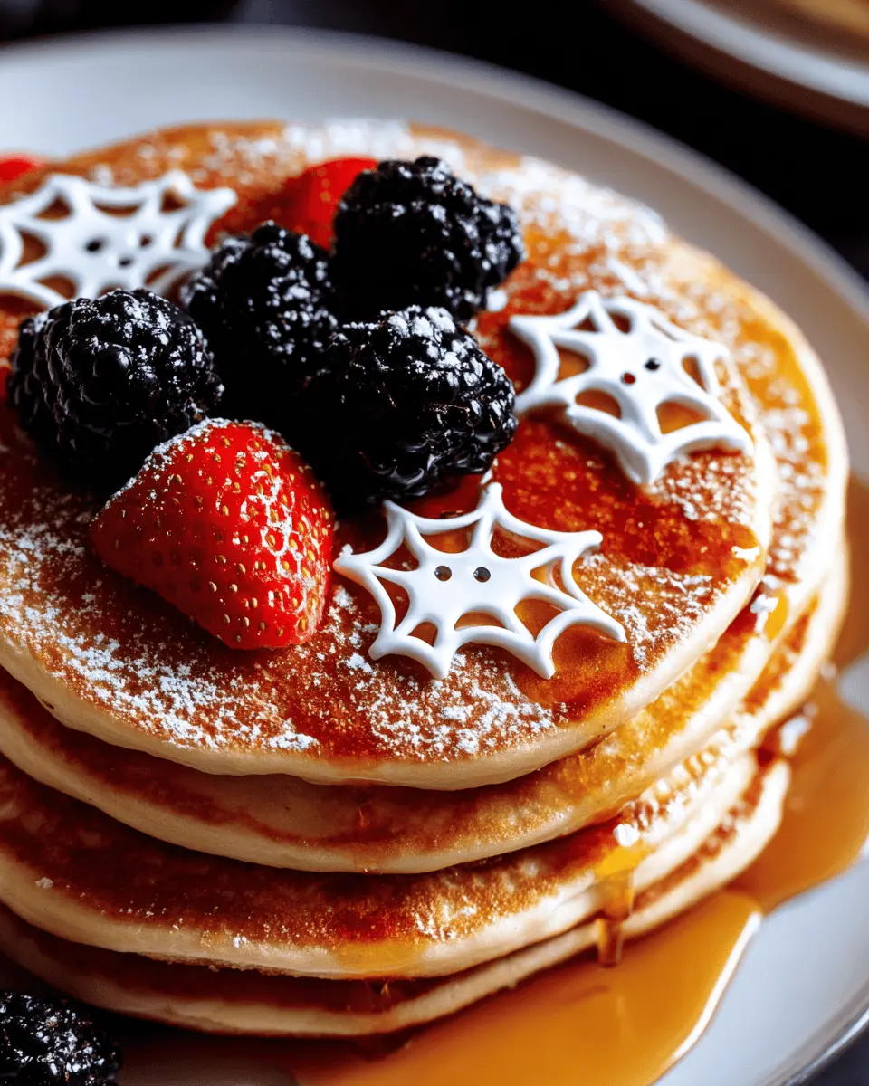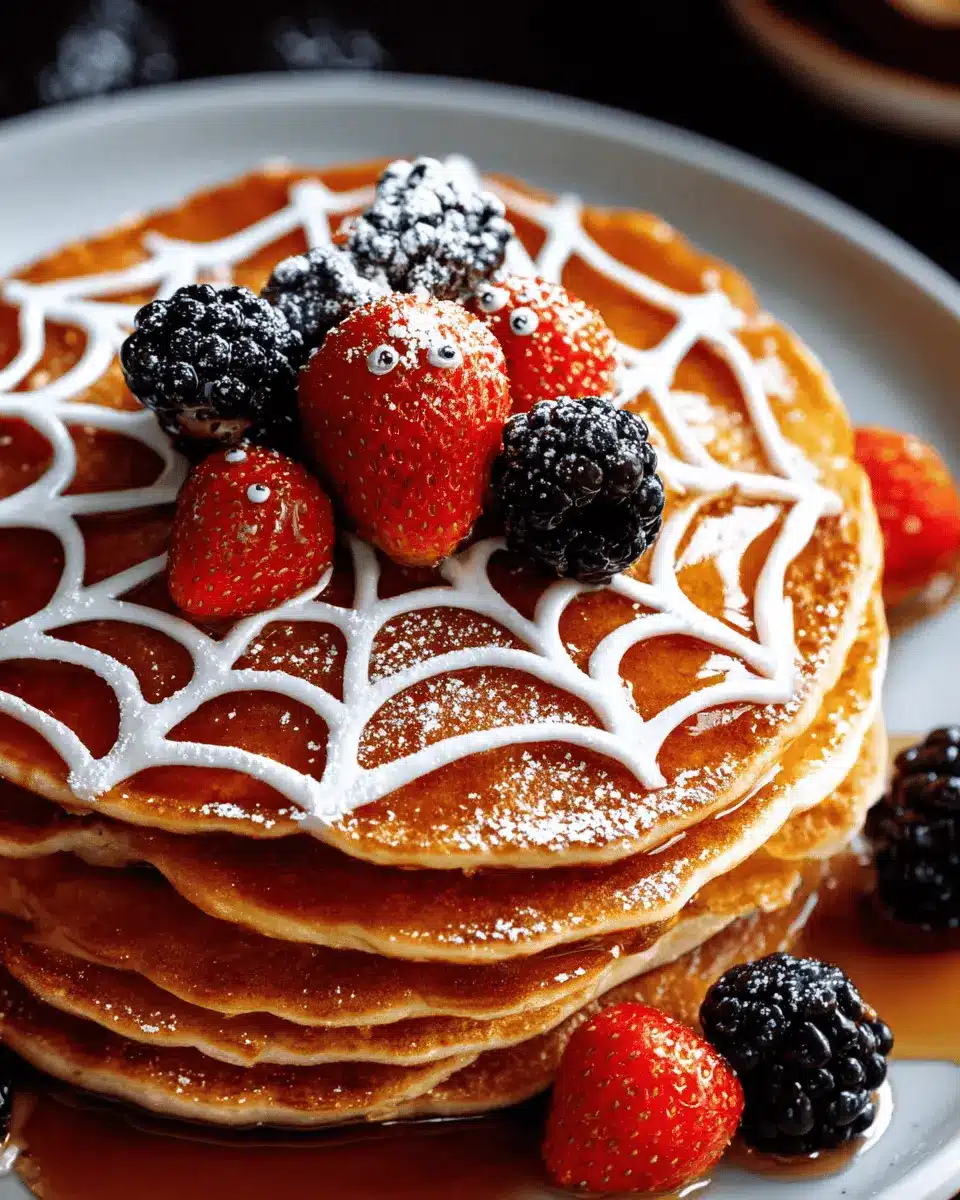 To finish off your easy spider pancakes, arrange the plate beautifully. Stack the pancakes high, add a generous drizzle of any extra icing for flair, and garnish with more berries around the edges. You might even consider a light dusting of powdered sugar for a spooky mist effect. As you present them, remember to catch your guests’ reactions; there’s nothing quite like seeing their delight at your creativity!