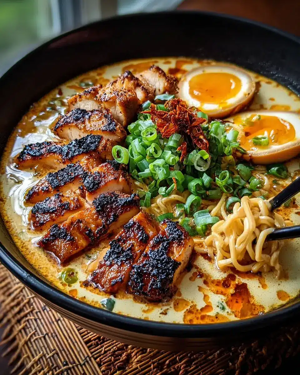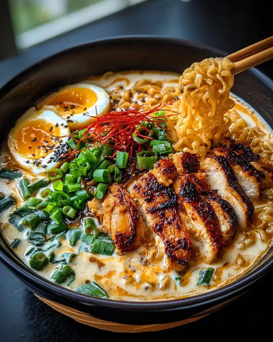 Fiery Chicken Ramen with Creamy Garlic Sauce