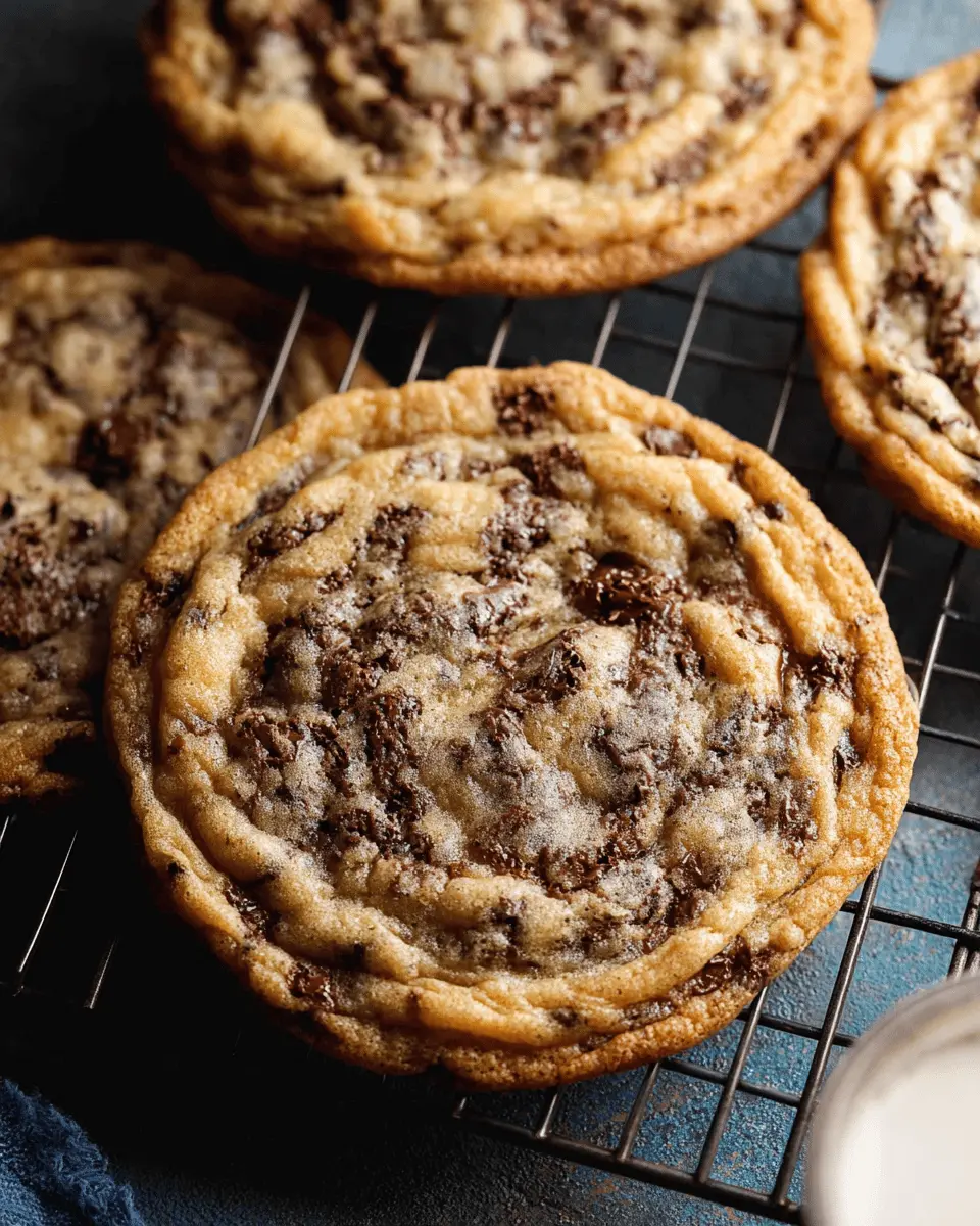 Let the cookies cool completely on a wire rack. And there you have it! Perfect giant chocolate chip cookies that are sure to impress. Don’t forget to share (or not) – either way, these cookies are bound to be a hit. Happy baking!