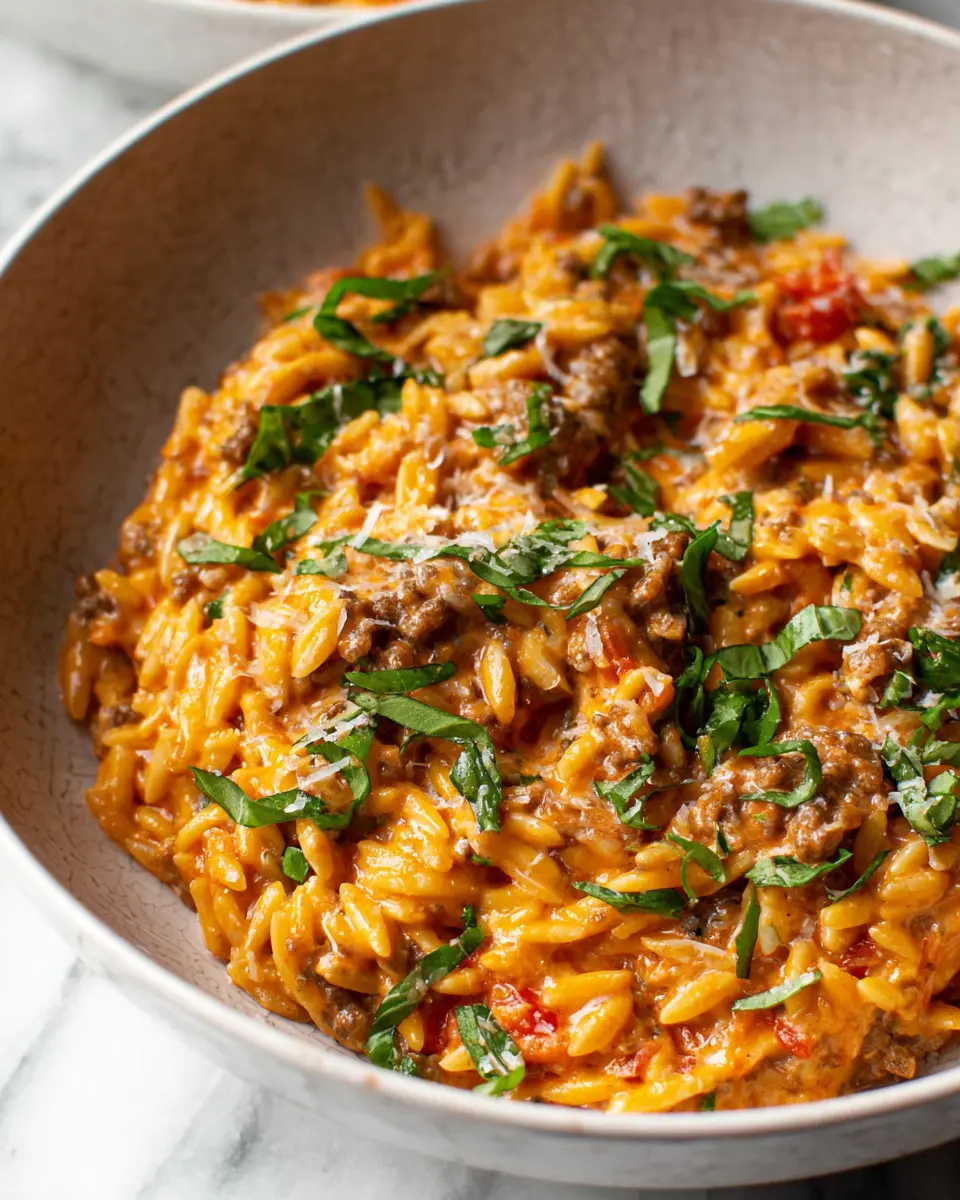 When you’re in need of a quick and delicious dinner, ground beef orzo with tomato cream sauce hits the mark! This dish packs flavor, is easy to prepare, and offers comforting nourishment in every bite. With just a handful of ingredients, you'll have a satisfying meal on the table in no time. Leave your stress at the door, grab your ingredients, and enjoy a delightful dinner tonight!