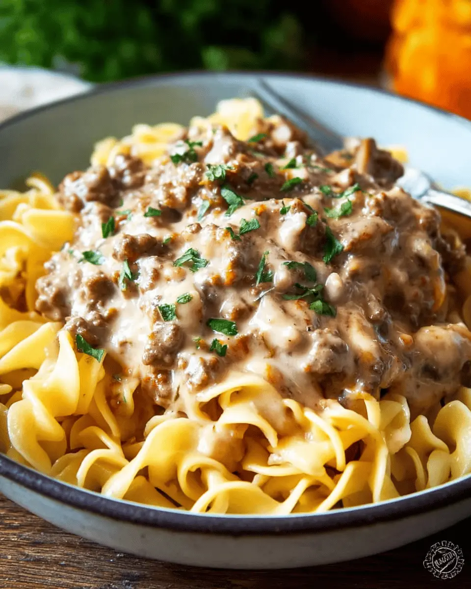 Presentation can transform your ground beef stroganoff into a restaurant-worthy dish: