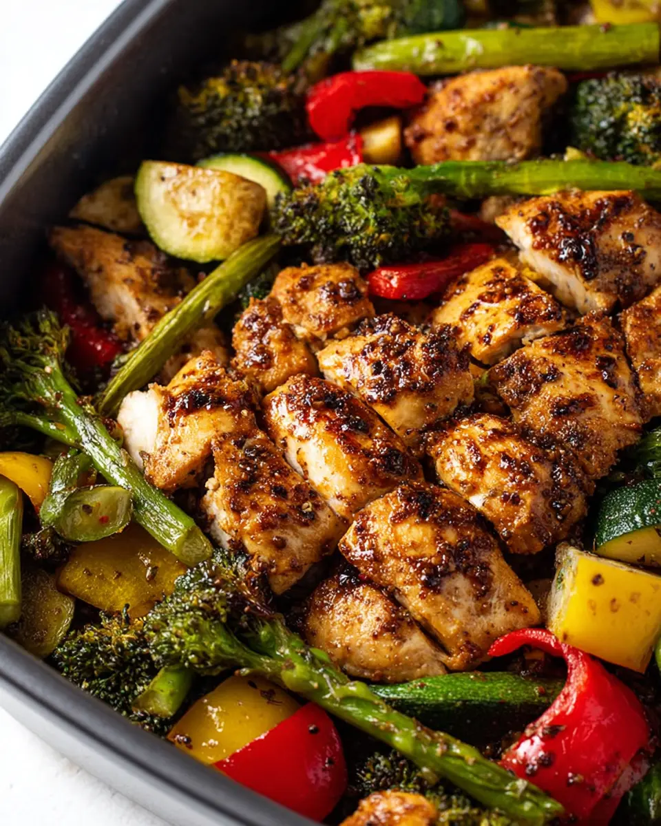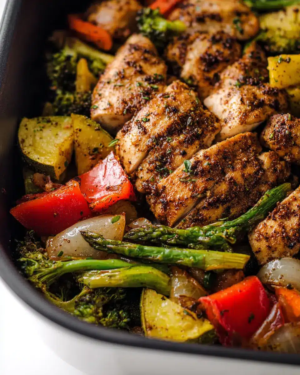 You're now ready to serve this gorgeous medley! Transfer your chicken and veggies onto a platter, and feel free to garnish with fresh herbs or a squeeze of lemon for an extra zing. This dish pairs well with a green salad or some quinoa on the side. Not only is it visually appealing, but it also offers a balanced meal bursting with flavors! Enjoy the delightful results of your culinary efforts—it’s healthy, hearty, and oh-so-satisfying.