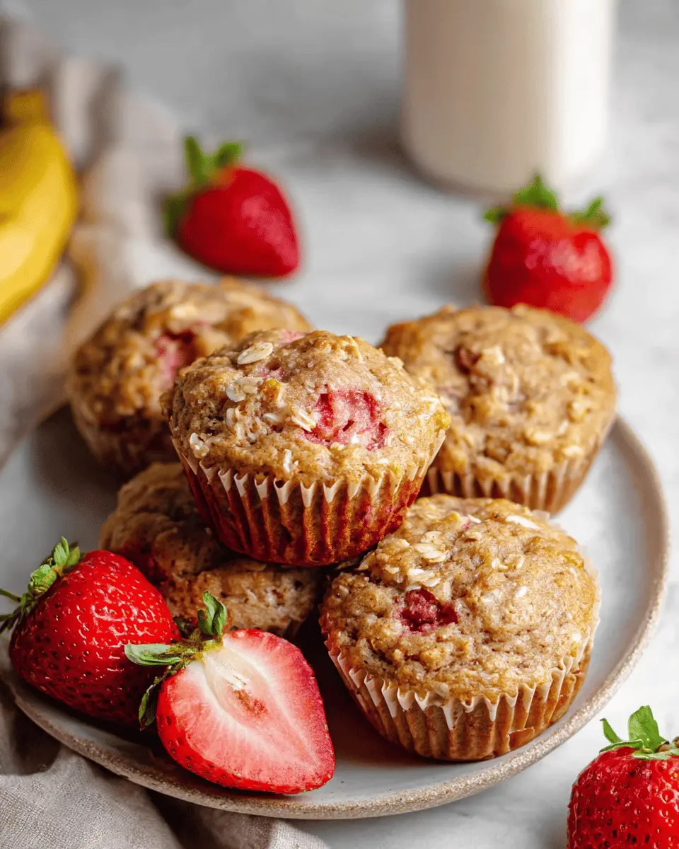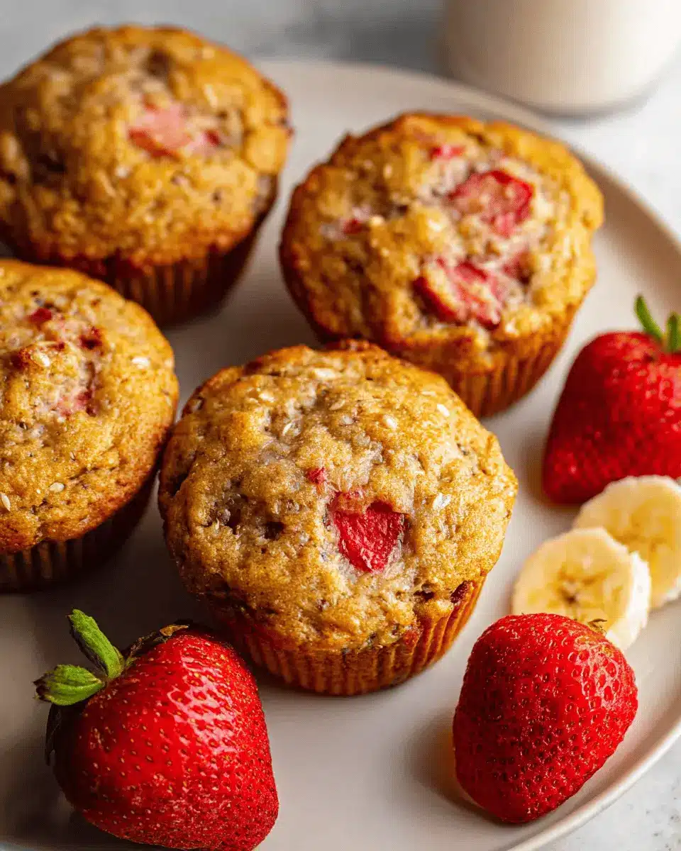 Not to mention, the aroma of freshly baked muffins can’t be beaten—your kitchen will smell heavenly! As you savor the fruits’ natural sweetness combined with the nutty oats and wholesome flour, you’ll wonder why you ever bought muffins from the store. So, gather your ingredients, and let’s whip up a batch of these irresistible Healthy Strawberry Banana Muffins!