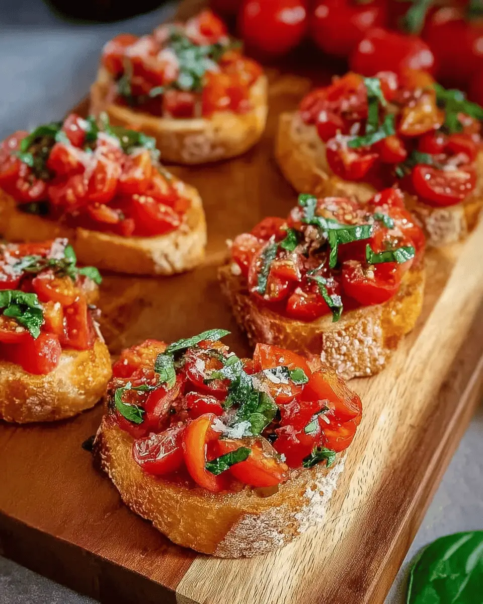 Absolutely! While fresh bruschetta is always best, you can prepare the tomato mixture a few hours ahead. Just make sure to store it in the refrigerator to maintain its freshness. Avoid topping the bread until you're ready to serve, as this keeps it crisp and delicious!