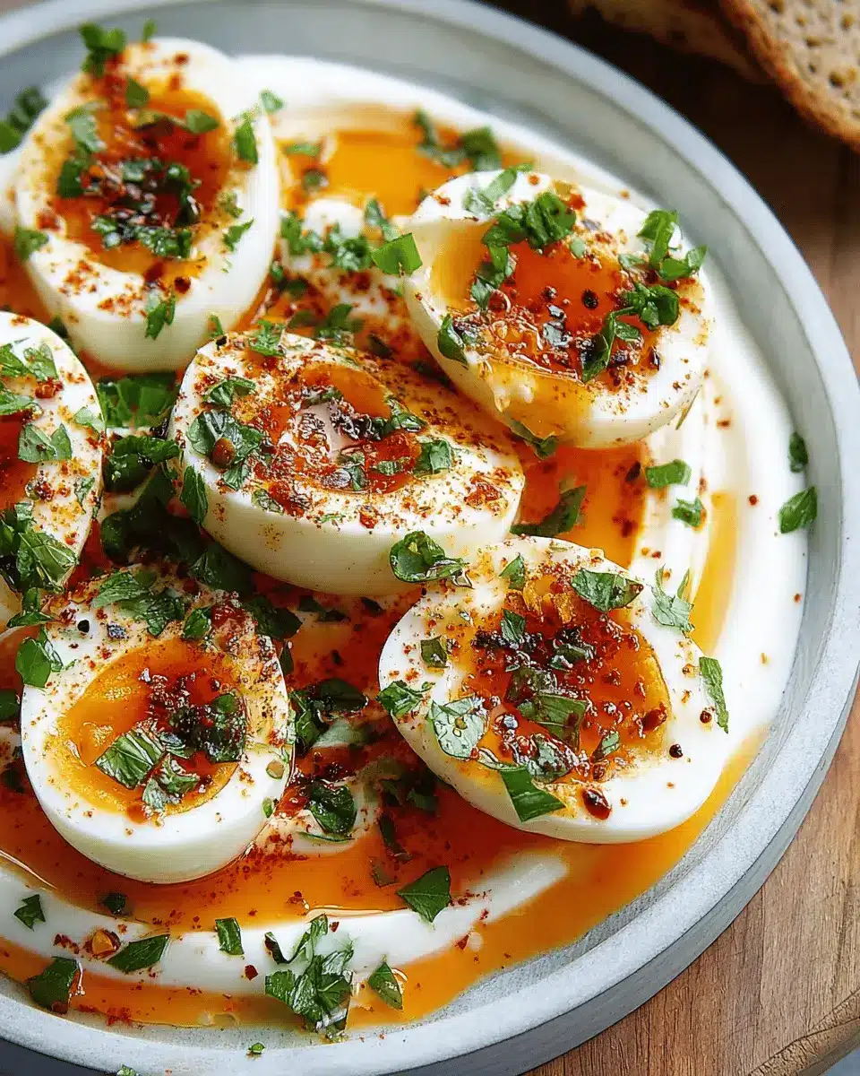 And there you have it—a delicious plate of jammy eggs with chili butter garlic yogurt that’s sure to impress! Enjoy the layers of flavor and the satisfaction of making this delightful meal.
