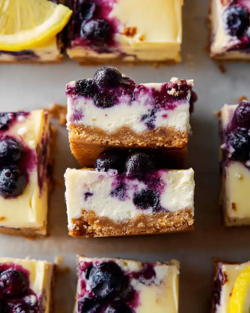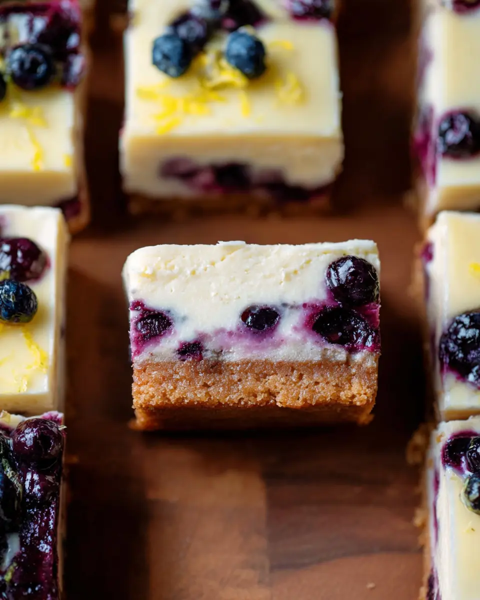 In summary, these Lemon Blueberry Cheesecake Bars are a delightful treat bursting with flavor. Perfect for gatherings or a sweet indulgence at home, they combine creamy cheesecake with zesty lemon and juicy blueberries. Elevate dessert time with these bars for a refreshing twist everyone will love!