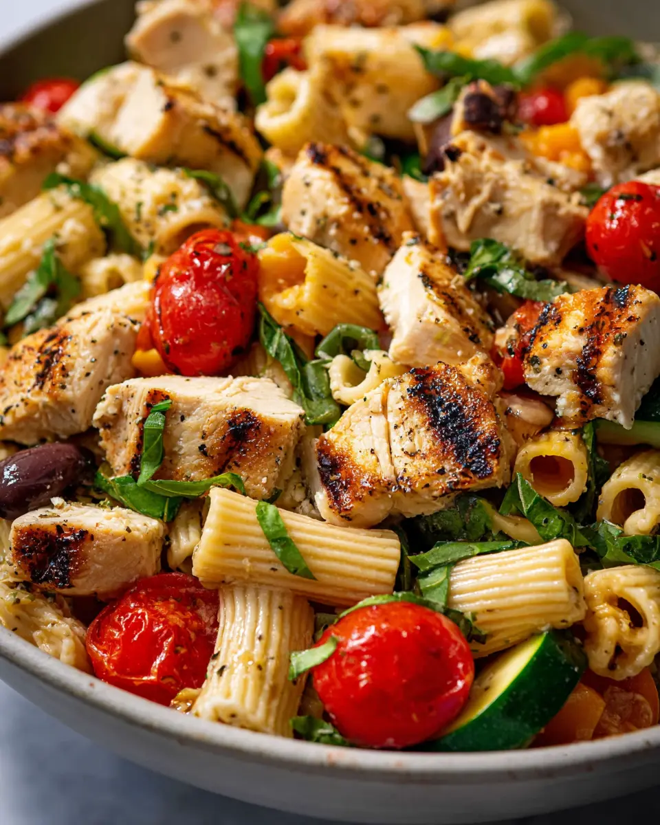 Absolutely! This salad is perfect for prepping ahead. You can cook the chicken and pasta, mix in the veggies and olives, and store it without the arugula and basil to keep them fresh. When you’re ready to serve, just add the greens and vinaigrette. It’s a fantastic dish for meal prepping or taking to potlucks!
