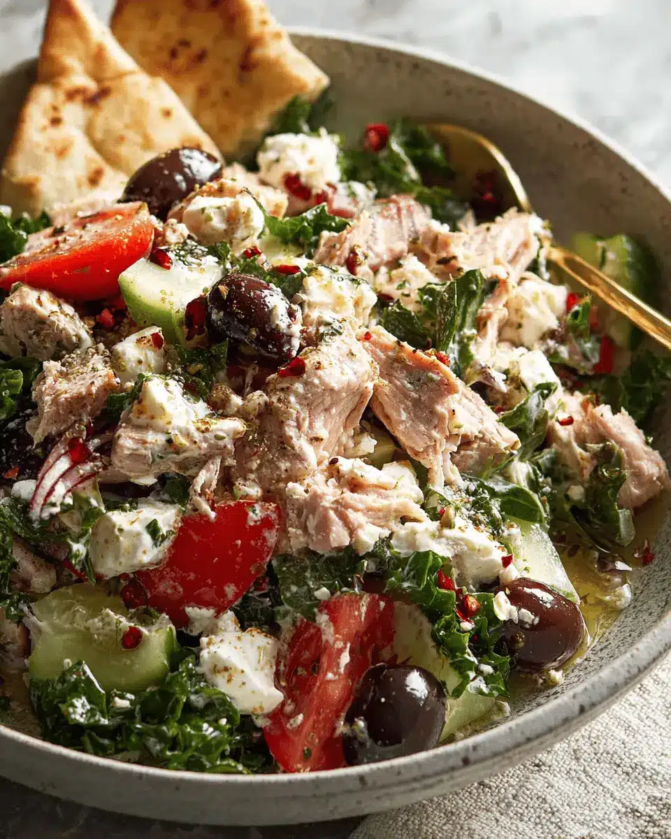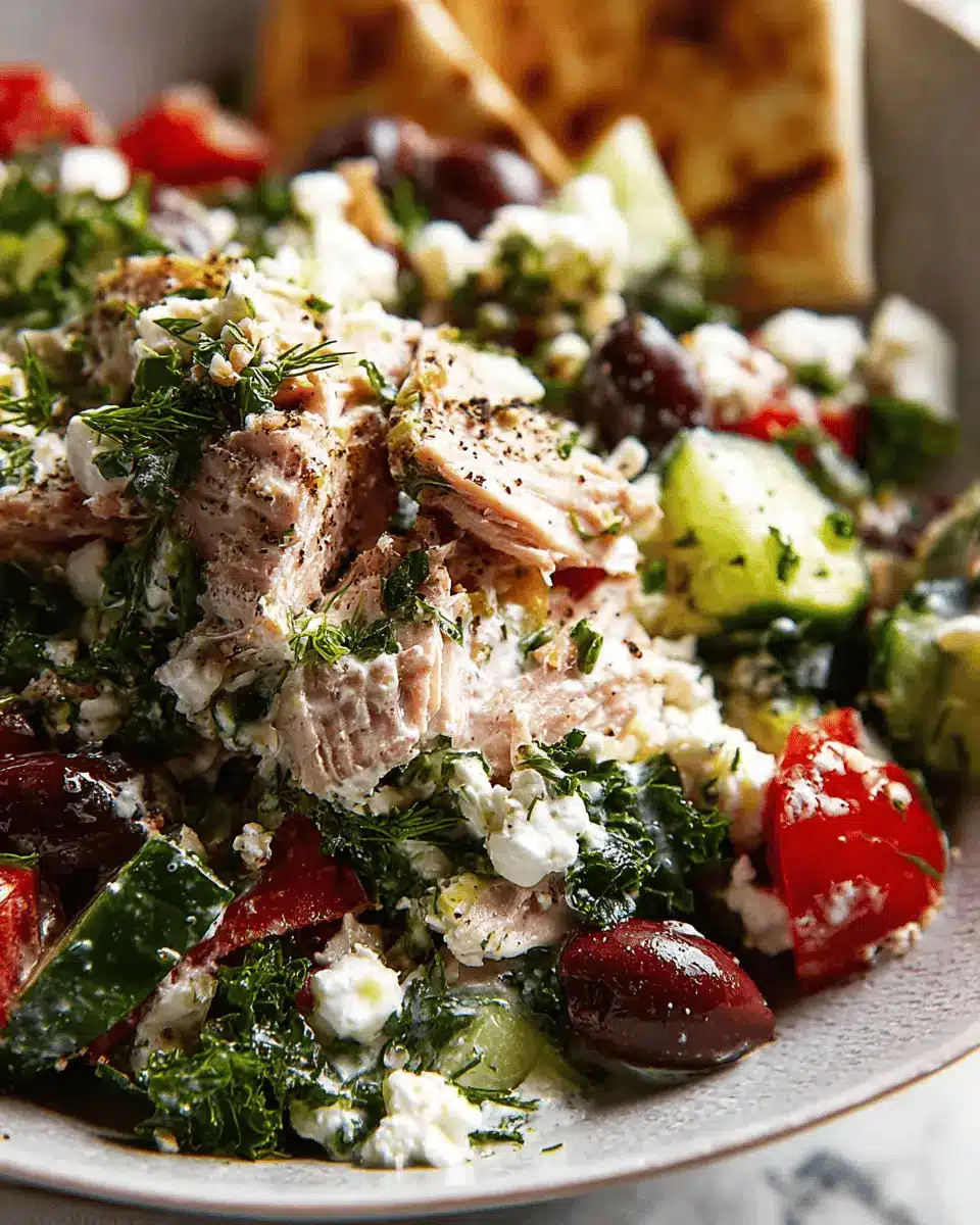 In conclusion, this delightful Mediterranean tuna salad with creamy feta dressing is perfect for a healthy lunch or a tasty dinner. Packed with vibrant ingredients and rich flavors, it’s not only wholesome but also incredibly easy to make. Enjoy it on its own or in pita pockets for a satisfying meal. Feel free to explore variations to keep it exciting!
