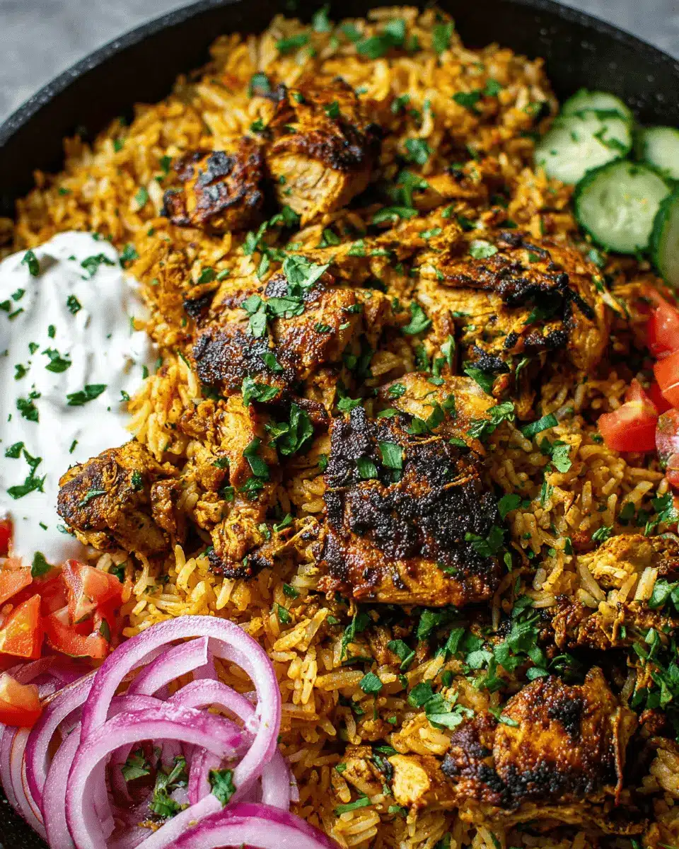 The rice isn’t just a side; it plays a crucial role in this one pan chicken shawarma recipe: