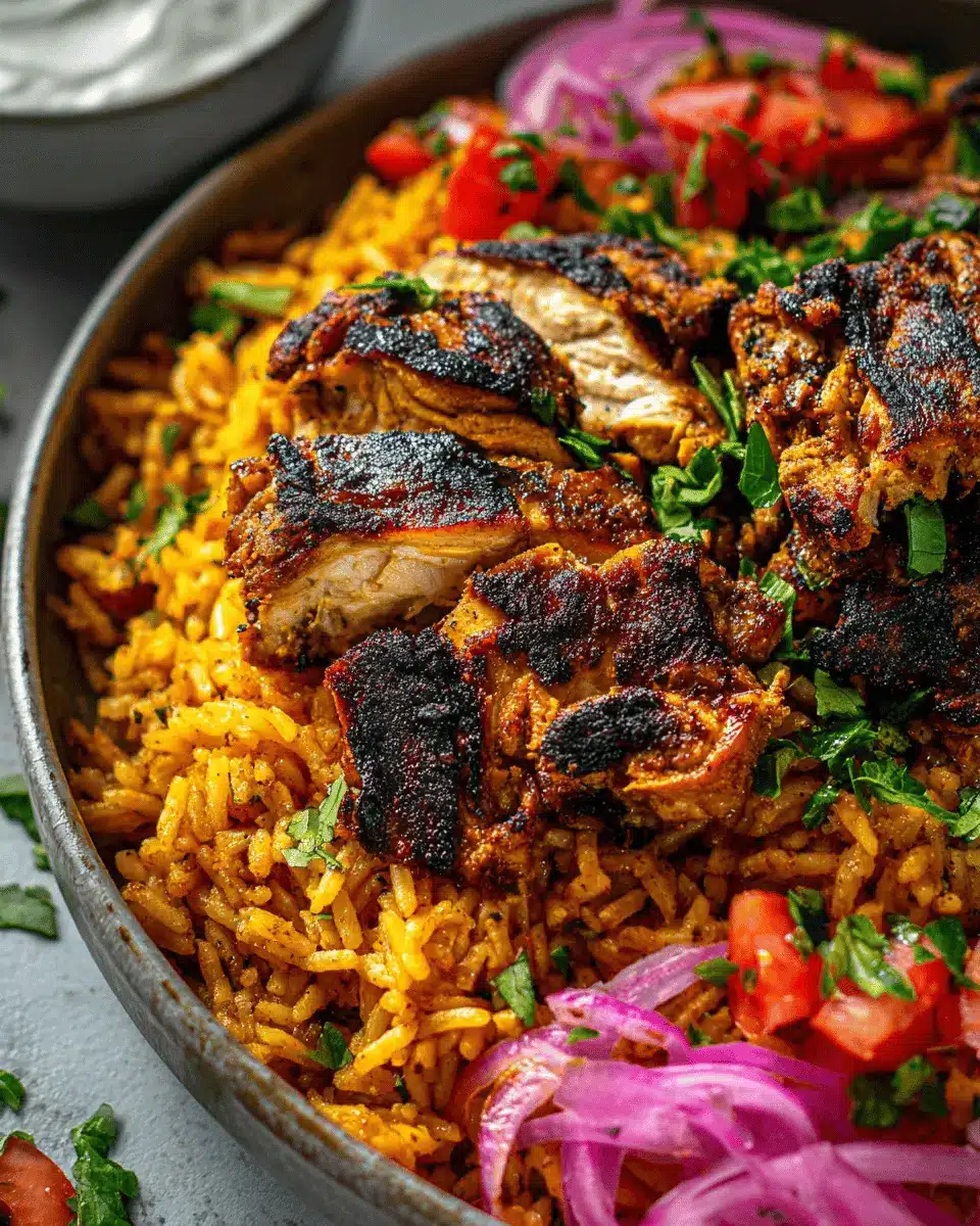 Next up, let’s move on to our chicken. Grab your 4-5 boneless, skin-on chicken thighs and place them in a medium bowl. Combine them with ¼ cup of Greek yogurt, freshly squeezed juice from one lemon, and half of your spice mix (which should include spices like ground cumin, coriander, and chili powder). This marinade not only infuses the chicken with flavor but also helps to tenderize it. Don’t rush this step; let it sit for at least 20 minutes. Trust me, your taste buds will thank you later!
