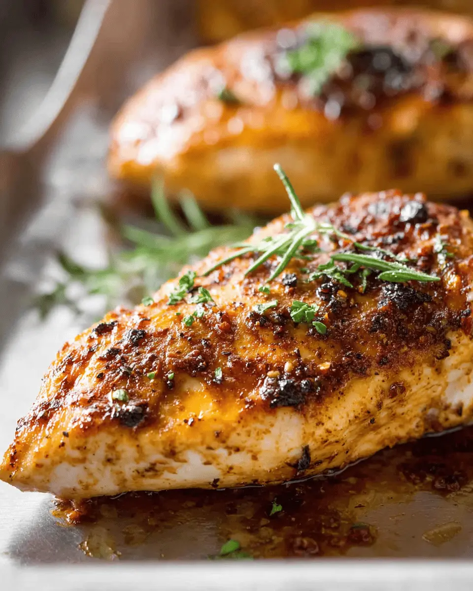 If you’re in the mood for something with a kick, try making a spicy baked chicken breast. Replace the paprika in the original recipe with cayenne pepper or chili powder for heat. Adding a teaspoon of smoked paprika will give it an extra layer of flavor. This variation pairs beautifully with a cooling yogurt dip or a side of avocado salad, making it perfect for a lively dinner!