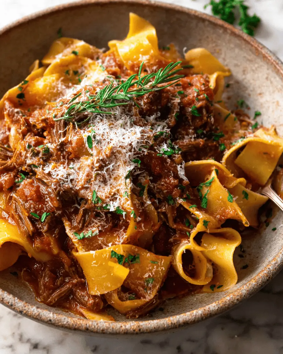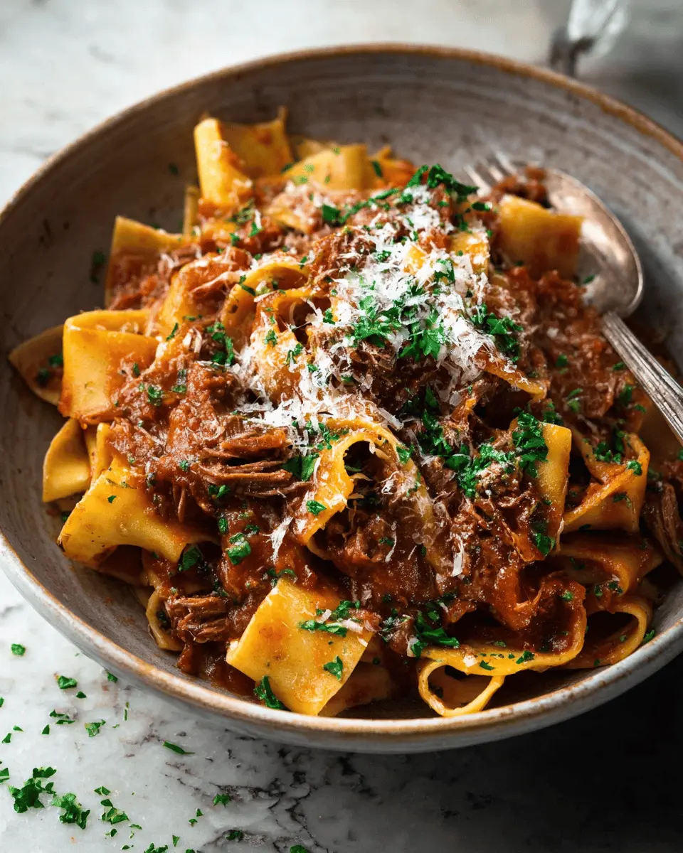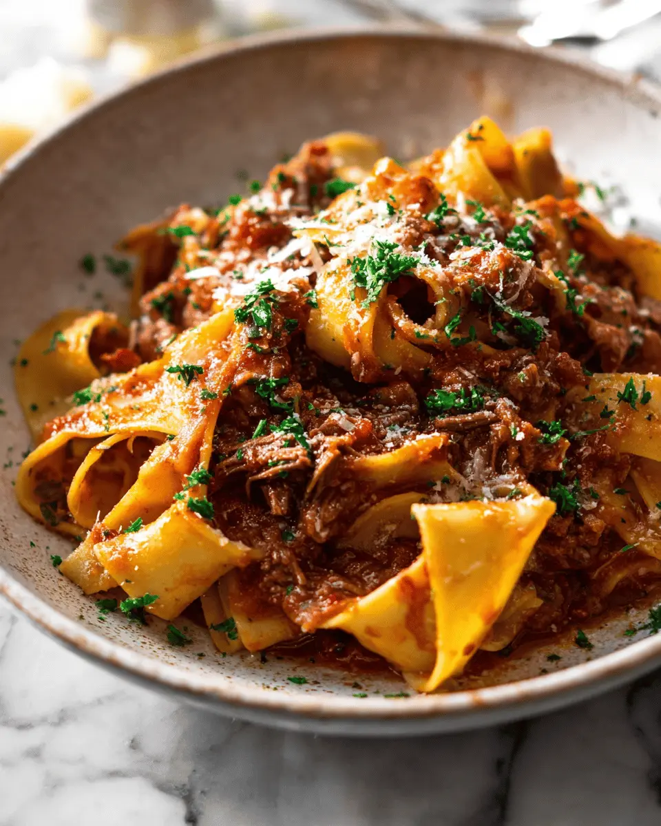 - Pappardelle Pasta (1 lb): These wide noodles have the perfect surface area to capture all that rich ragu, making each bite a burst of flavor.