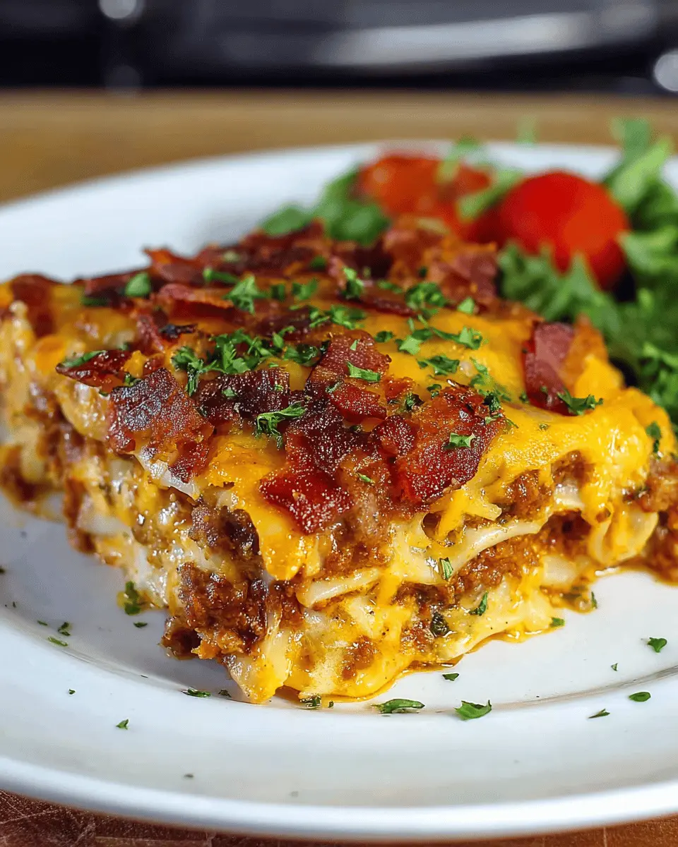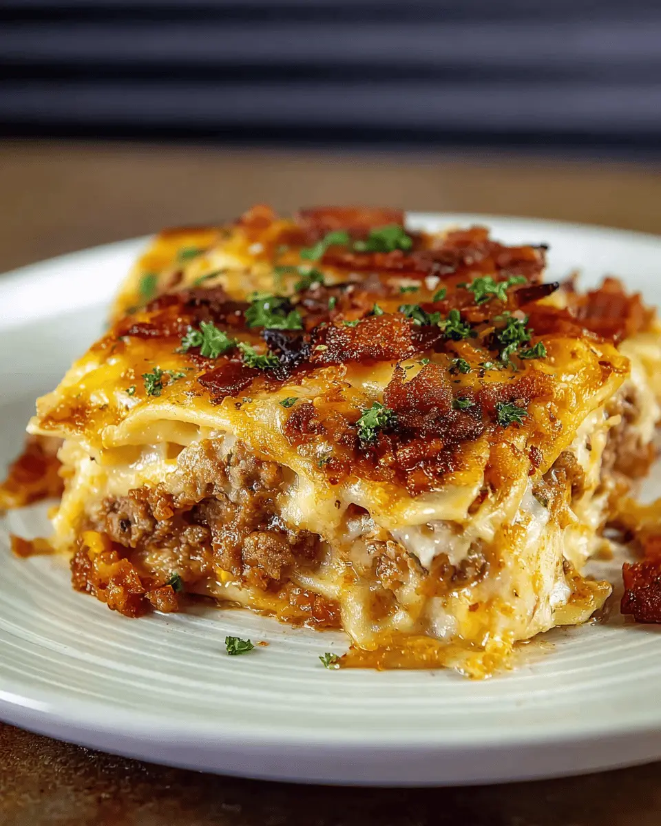 Parmesan Garlic Bacon Cheeseburger Lasagna