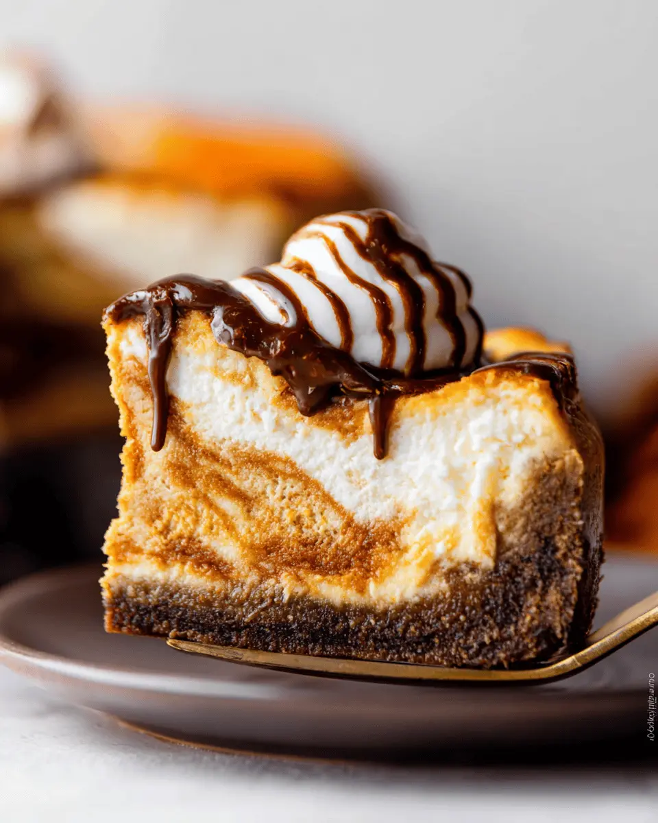 If you're a chocolate lover, this version will excite your taste buds. Simply melt 8 ounces of dark chocolate and fold it into the cream cheese mixture before dividing it for swirling. The combination of creamy chocolate and spiced pumpkin creates a rich, decadent dessert that's perfect for special occasions. Serve it with a drizzle of chocolate ganache for an extra indulgent touch!