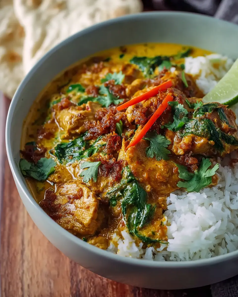 Finally, if you're feeling adventurous, chop up some fresh coriander (cilantro) and stir it into the curry for a burst of brightness. To serve, ladle the curry generously over steamed basmati rice and accompany it with naan bread, a dollop of plain Greek yogurt, and some mango chutney. Trust me, this is where you want to splurge a bit! Finish with an extra sprinkle of coriander or some crispy fried shallots for that extra crunch. Enjoy every spoonful of your quick coconut chicken curry with family and friends, and watch how it transforms your weeknight dinner into something special!