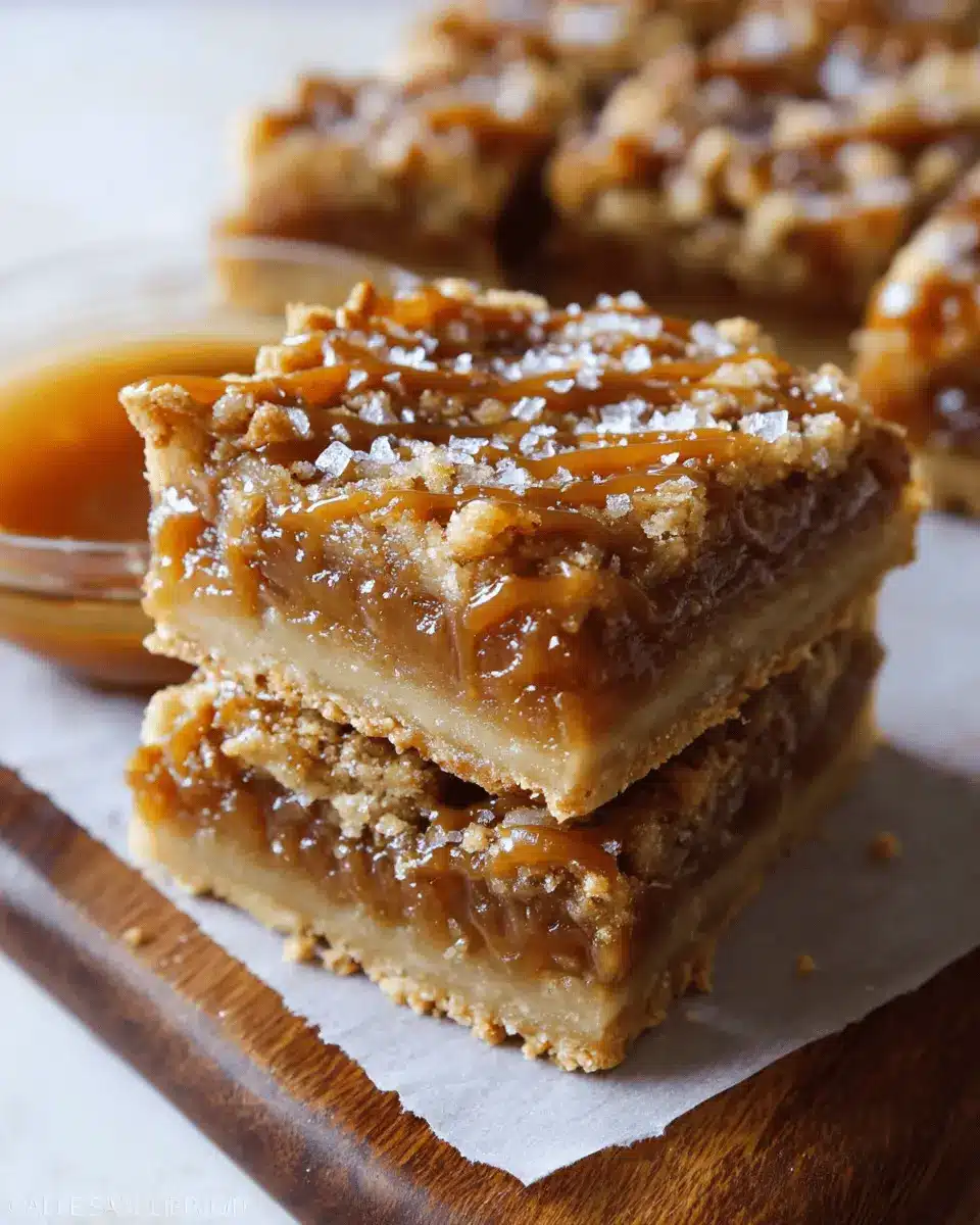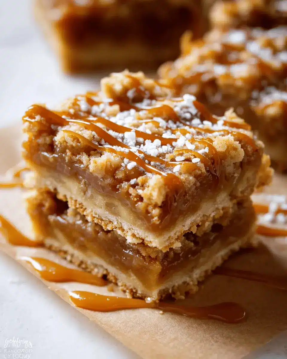 In wrapping up, these salted caramel apple pie bars are a delightful twist on a classic dessert, perfect for gatherings or cozy nights in. Their buttery crust, sweet apple filling, and luscious salted caramel create a treat that’s hard to resist. Give them a try, and enjoy every bite!