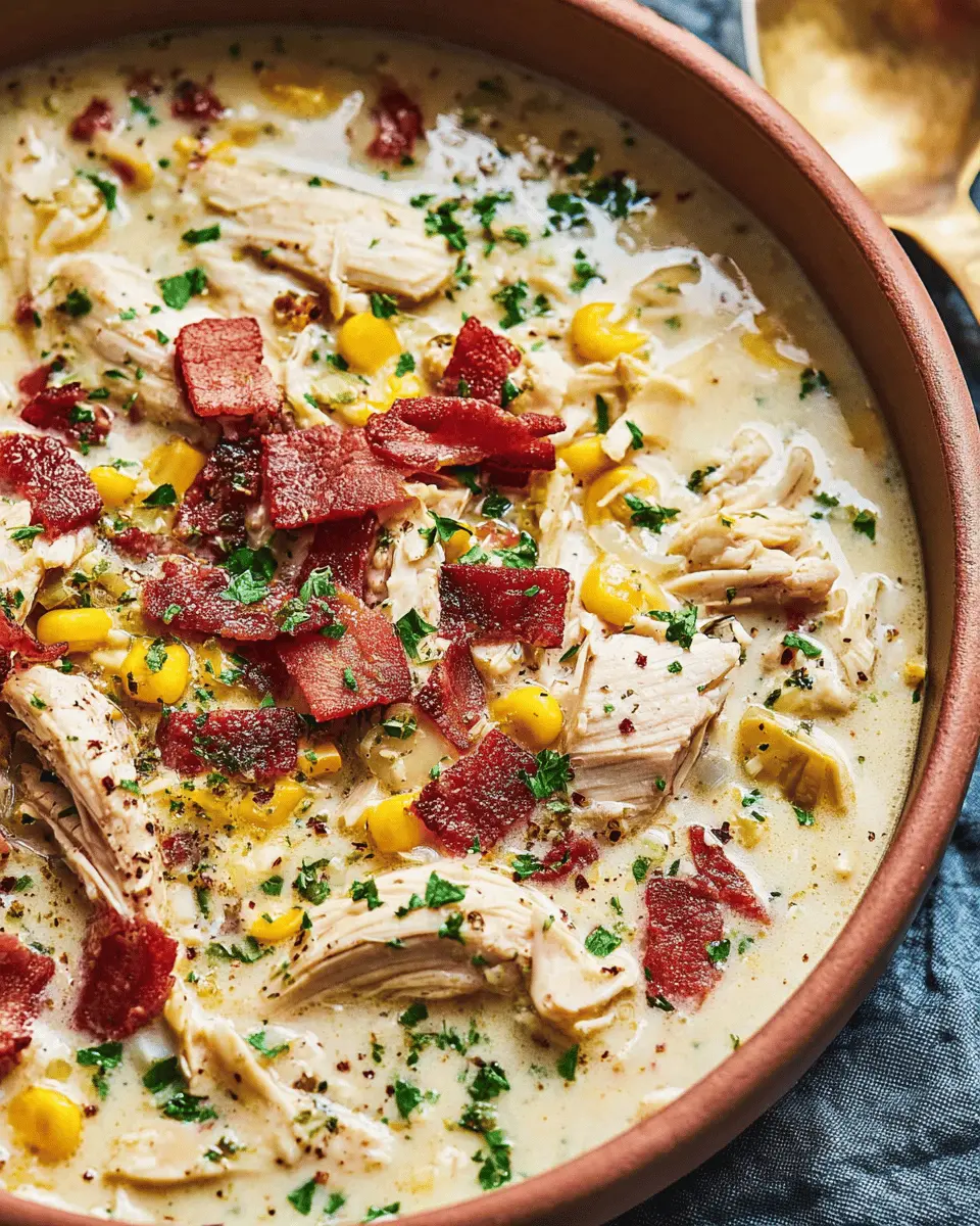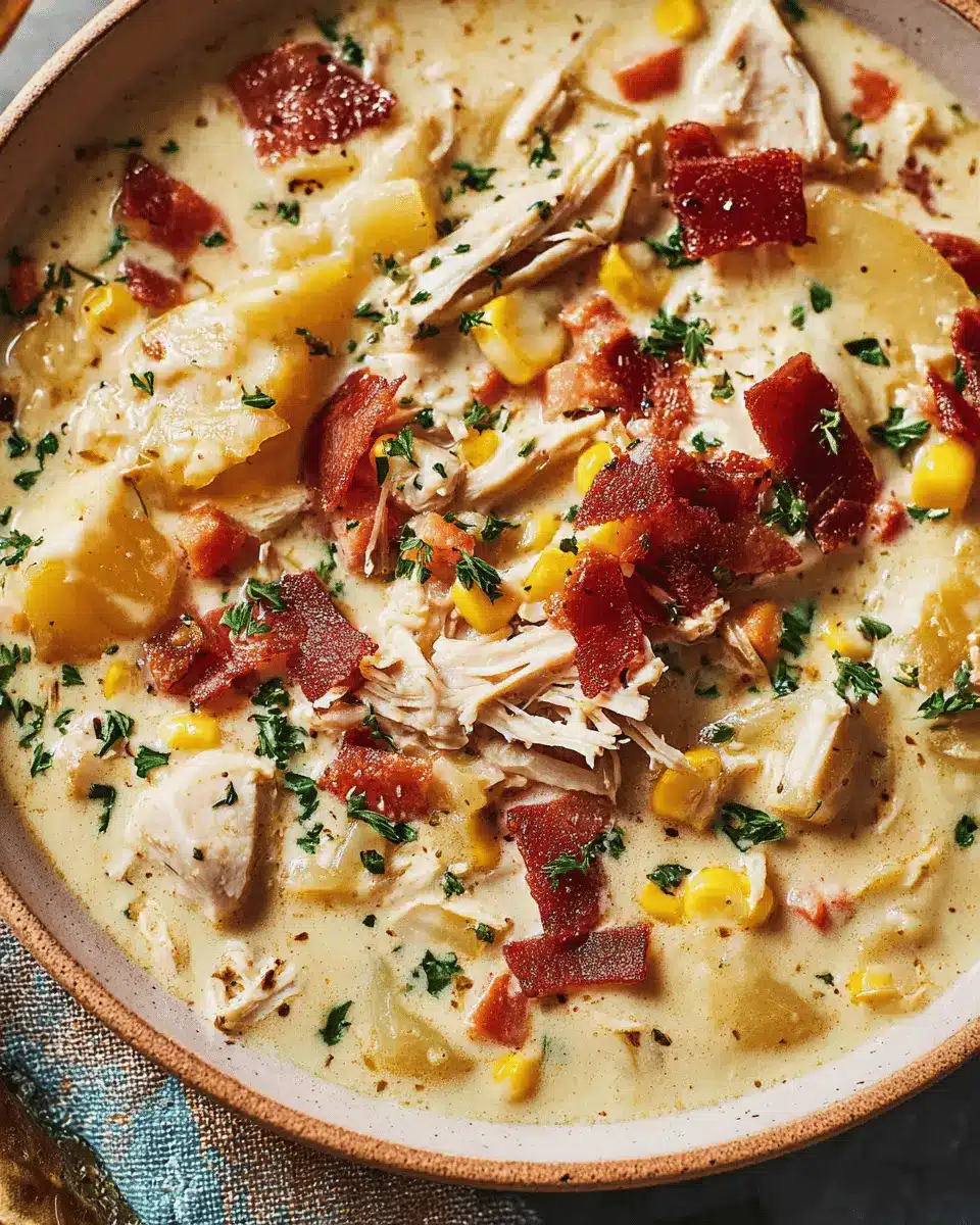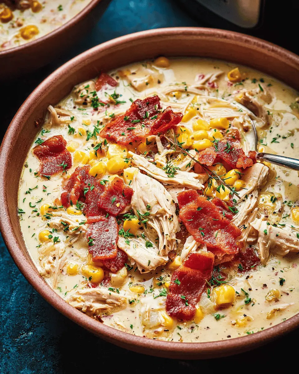 Slow Cooker Chicken Corn Chowder with Turkey Bacon Delight