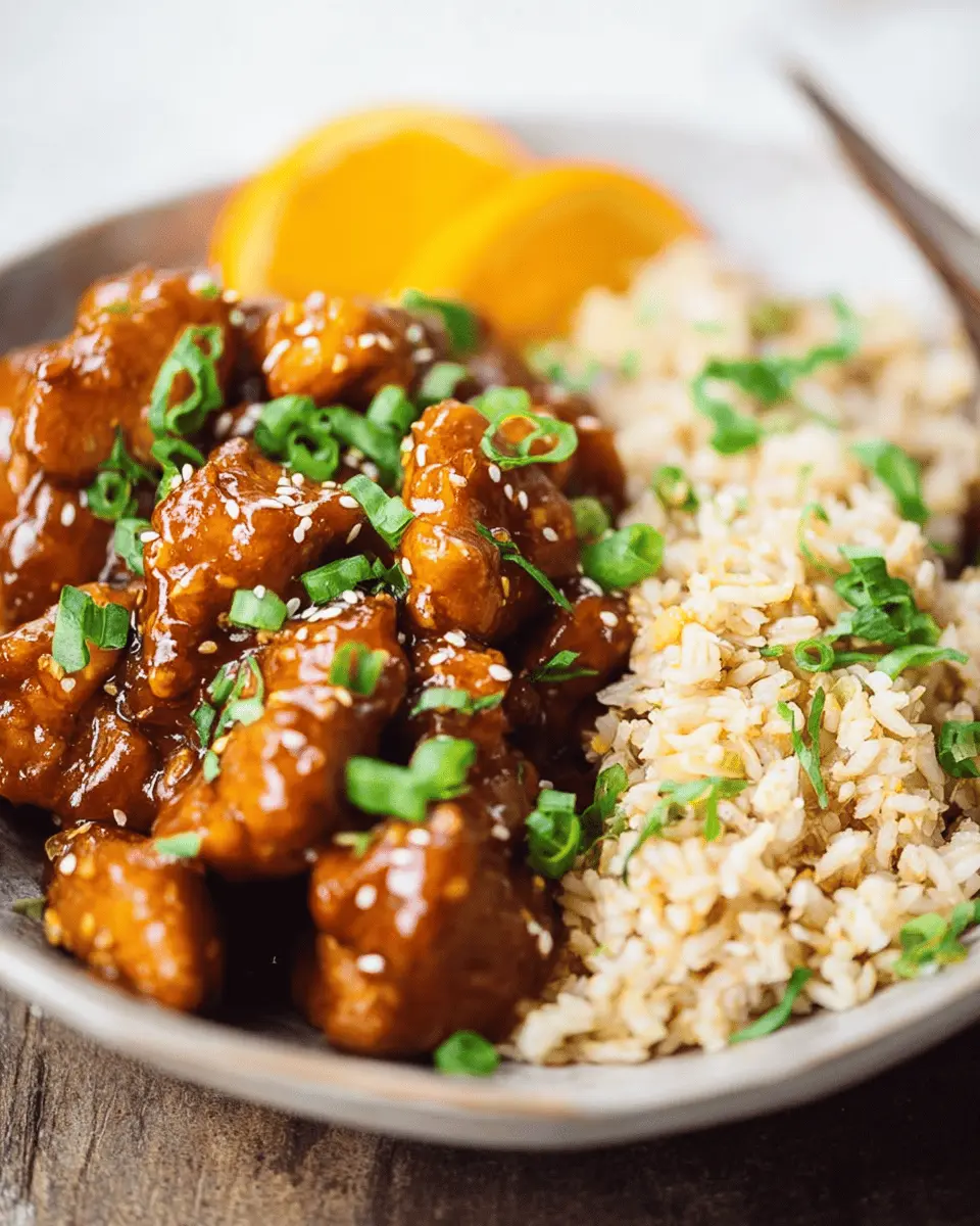 - Steamed Jasmine Rice: Its subtle aroma balances the sweetness of the orange sauce.