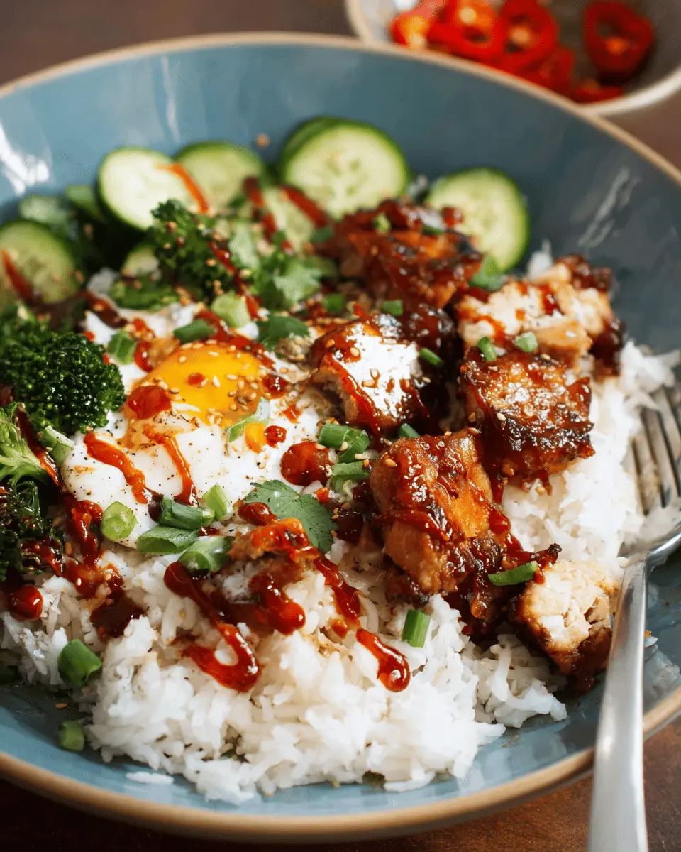 Absolutely! Sticky chicken rice bowls are ideal for meal prep. Cook the rice and chicken ahead of time, and store them in airtight containers in the fridge for up to four days. Just reheat everything in the microwave or a skillet before serving. Pro tip: keep the sauce separate to maintain its stickiness and flavor!