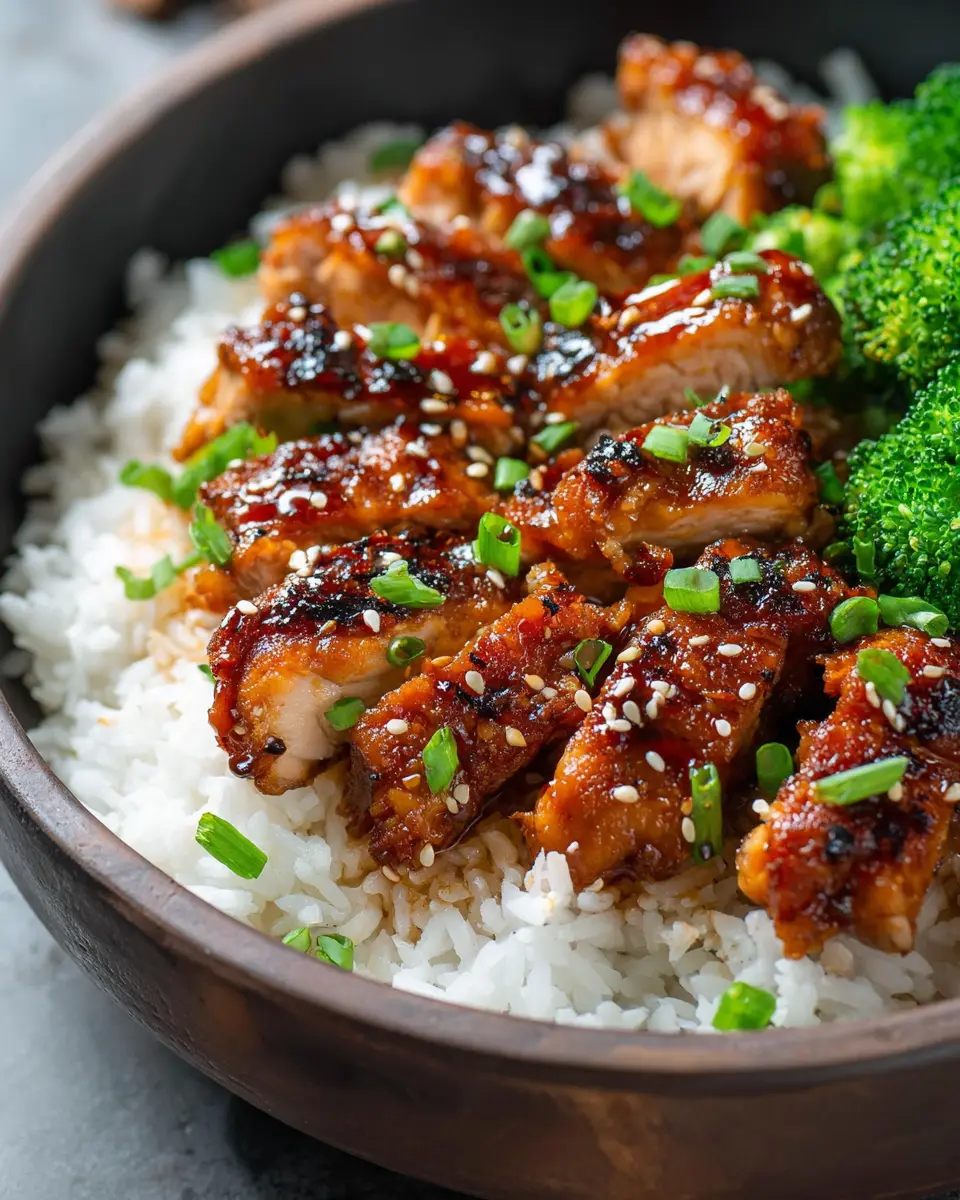 The actual cooking process is pretty quick, only taking around 20 minutes. You’ll be searing the chicken and simmering it in that delicious teriyaki sauce until perfectly cooked.