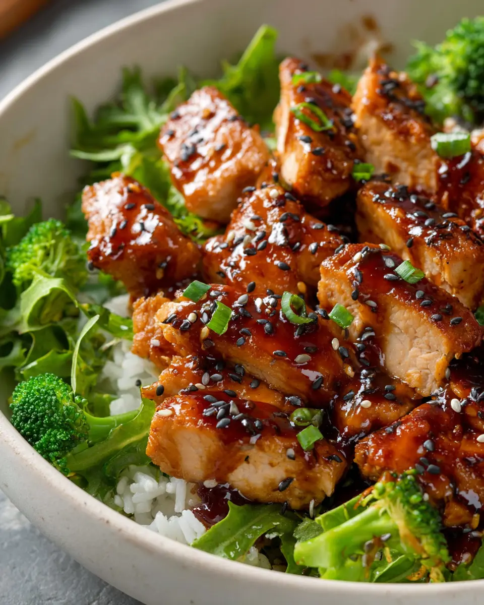 - Layered bowl: Place the chicken atop a mound of rice, surrounded by vibrant stir-fried vegetables.